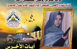 فإننا اليوم في كتائب شهداء الأقصى - فلسطين لواء الشهيد القائد " نضال العامودي"، نحُيى ذكرى إستشهاد أميرة “الكتائب”  " آيات الأخرس " التي قدمت نموذجاً حياً لما تعيشه المرأة الفلسطينية وسطرت بدمائها الذكية أروع ملاحم التضحية والفداء وجعلت من جسدها الطاهر شظايا متناثرة قطفت بها أرواح عدد من أحفاد القردة والخنازير، في زمن الخنوع  والركوع العربي الذي أصبحت المرأة الفلسطينية فيه تدافع عن كرامة الأمة المهزومة.