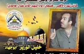 فإننا اليوم في كتائب شهداء الأقصى – فلسطين لواء الشهيد القائد " نضال العامودي"، نحُيى ذكرى إستشهاد قائد فلسطيني كبير ترجم إنتماءه لفلسطين ولقضيته من خلال مسيرة نضالية طويلة تُوجَ فصولها الأخيرة بالشهادة، مجددين العهد والقسم مع الله بأن نمضى قُدماً على الطريق النضالي الذي مضى وقضى عليه الشهيد القائد " خليل الوزير"وقافلة الشهداء فلسطين الأبطال .