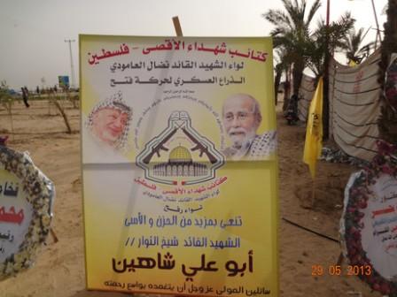 قام وفداً قيادياً من كتائب شهداء الأقصى- فلسطين برفح عصر يوم الأربعاء ، بزيارة بيت عزاء المناضل الكبير وشيخ الثوار أبو علي شاهين وأشادت الكتائب بكلمة ألقتها ببيت العزاء بمواقف الراحل أبو علي وتاريخه المشرف وطالب المتحدث بضرورة رص الصف الفتحاوي من جديد وطالب القيادة الفتحاوية العمل علي توحيد كل اطر الحركة ، مشددة على أن أبو علي كان دائما يطالب بالوحدة داخل الحركة, وأكد علي شجاعة وحكمة منقطعة النظير للشهيد أبو علي في كل معارك الشرف والبطولة التي خاضها دفاعا عن شعبنا وقضيته العادلة, حيث نظمت اللجنة الاجتماعية بكتائب شهداء الأقصى- فلسطين لواء الشهيد القائد نضال العامودي زيارة حاشدة إلى بيت عزاء المناضل الفتحاوي الكبير أبو علي شاهين الواقع في رفح جنوب قطاع غزة، بمشاركة وحضور عدد من أبناء و قادة الكتائب في قطاع غزة . تقدم الوفد الزائر قيادة الجنوب في الكتائب ...