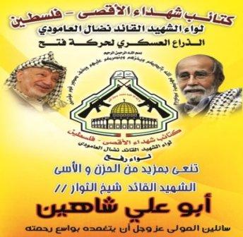 لكتائب شهداء الاقصي – فلسطين لواء الشهيد القائد نضال العامودي .