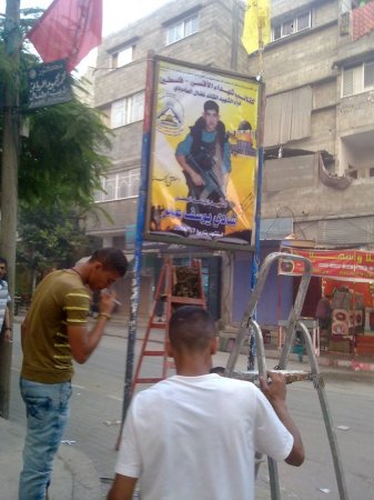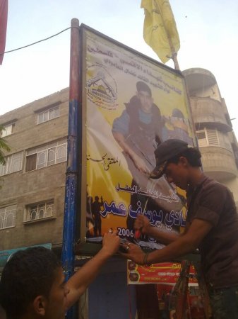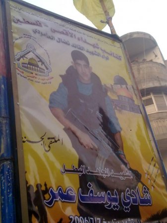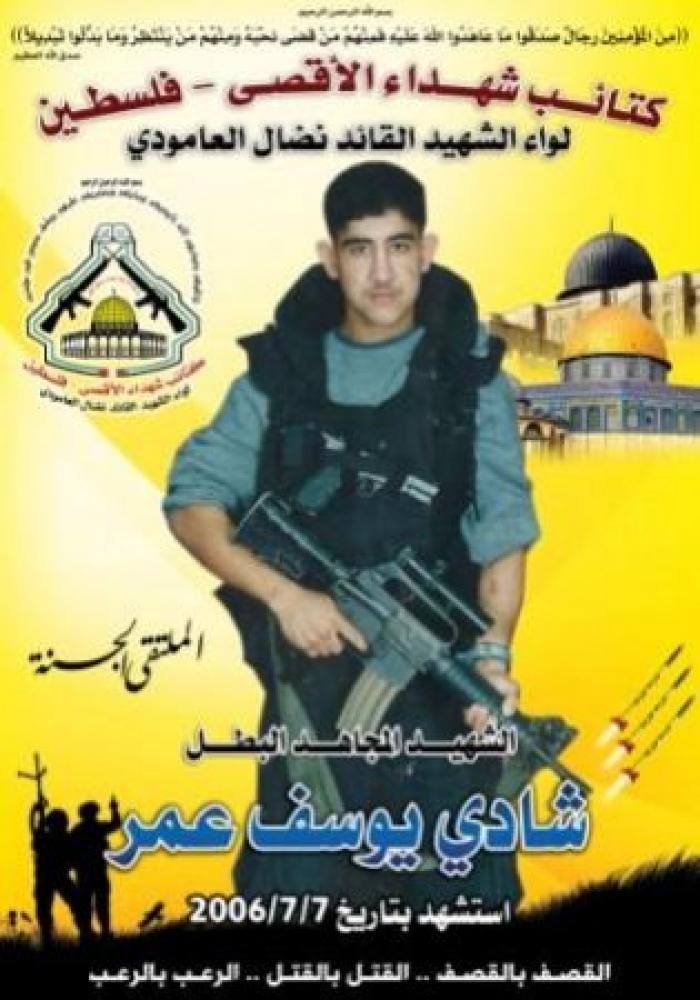 جددت كتائب شهداء الاقصي فلسطين لواء الشهيد نضال العامودي صورة الشهيد شادي يوسف عمر الذي استشهد في اجتياح 7/7/2006  في منطقة الكرامة
