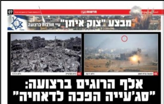 وتناقلت الصحف الإسرائيلية الصادرة صباح اليوم الأحد صور الدمار الواسع في حي الشجاعية في قطاع غزة، في محاولة لربما "لإشفاء غليل" الرأي العام الإسرائيلي على وقع الخسائر غير المتوقعة في صفوف جنود الاحتلال، والتي تجاوزت الأربعين قتيلاً.