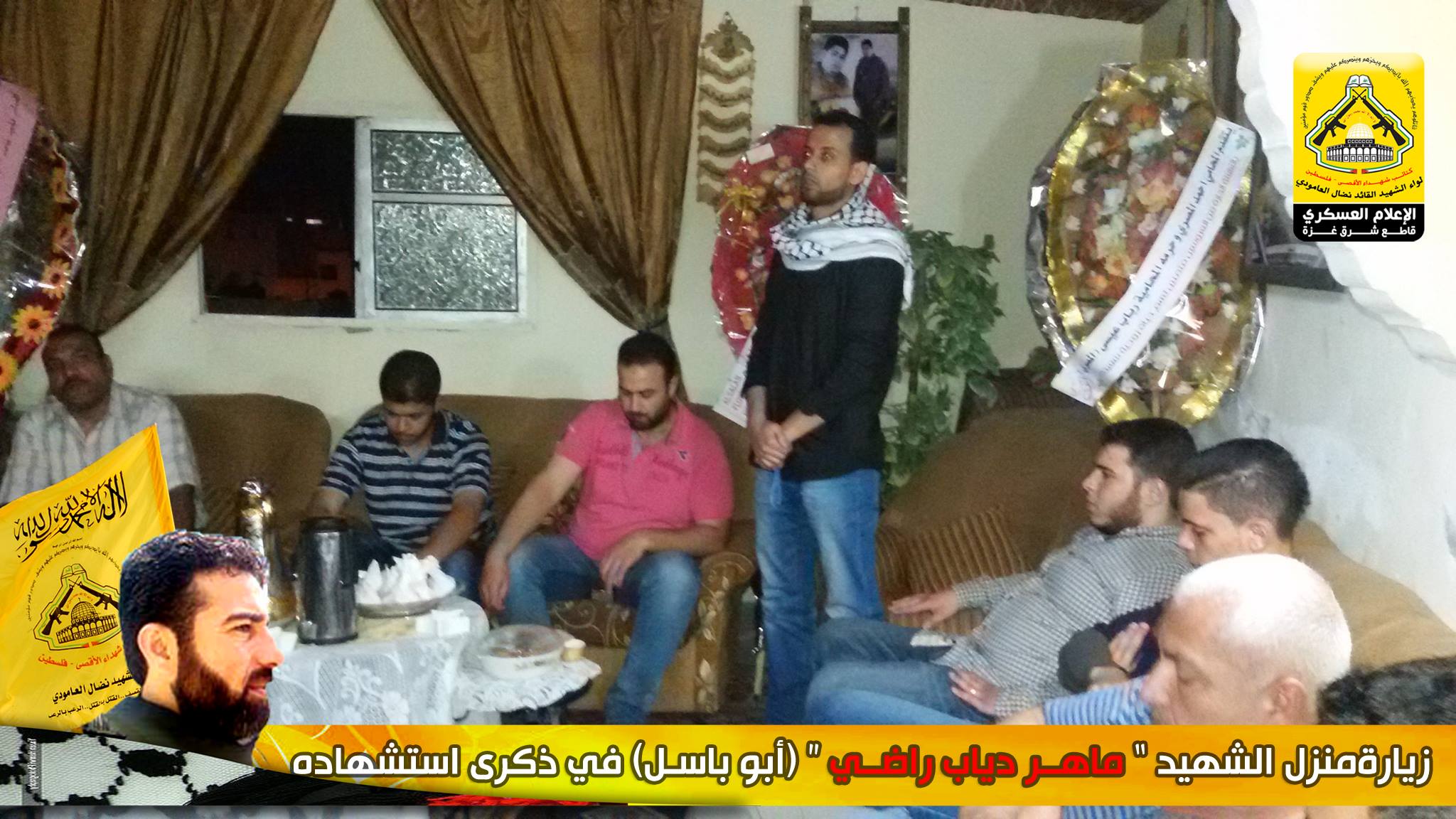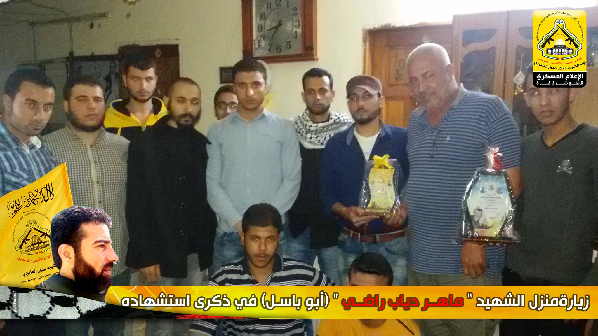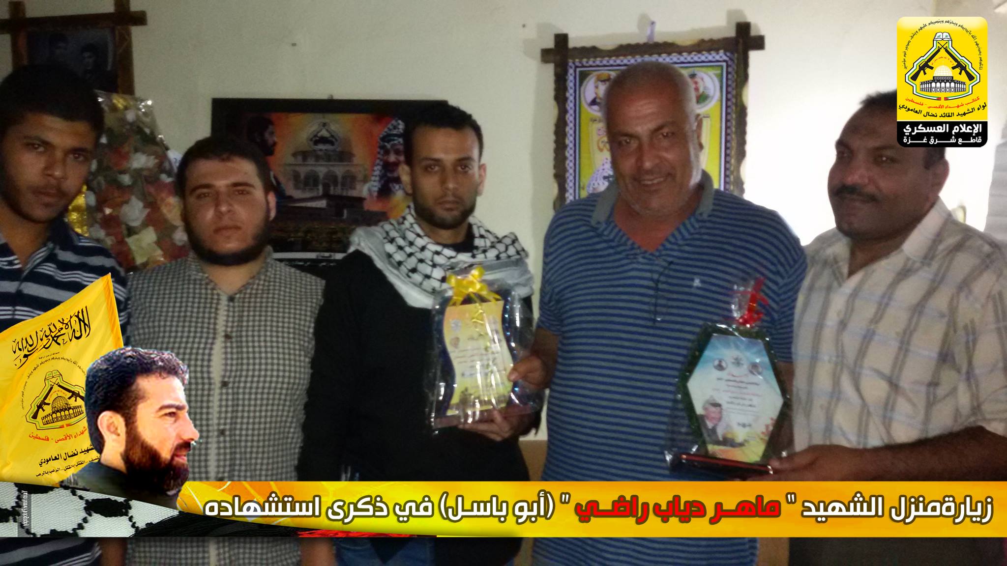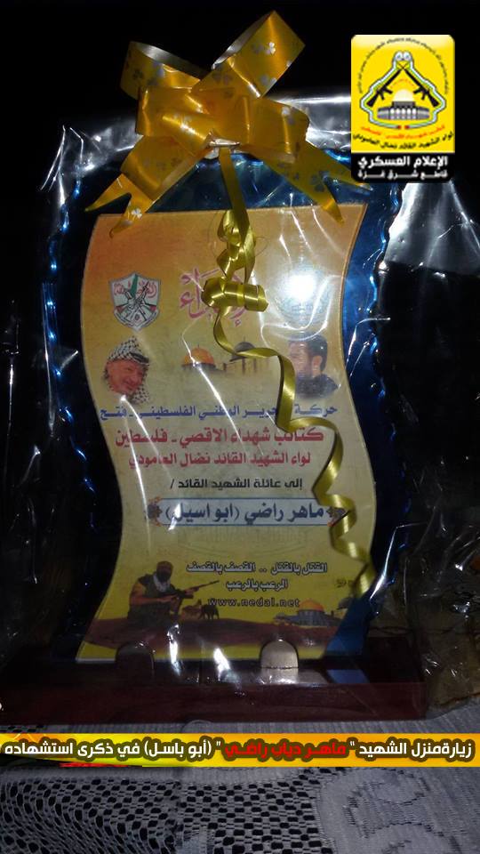 رغم مرور وقت طويل على رحيل الشهداء الا أن هذا اللواء العظيم كان الأوفى لدمائهم والحافظ لنهجهم والماضي في دربهم ، كيف لا وأنتم شهداؤنا الأبطال مأثرنا ورمز عزنا، أنتم من افتديتم دمائكم الطاهرة ورهنتوا حياتكم لأجل فلسطين وشعبها العظيم، فقد تقدم وفد من كتائب شهداء الأقصى – فلسطين (لواء الشهيد القائد / نضال العامودي) بزيارة لبيت عائلة الشهيد القائد : ماهر دياب راضي "أبا باسل" ، في الذكرى الثامنة لإستشهاده لنقول لهم والذي رفع السماء بلا عمد ما نسينا شهداء شعبنا ولن ننساهم فما زلنا نحمل وصاياهم وماضون على عهدهم حتى التحرير.