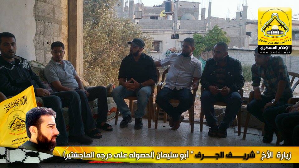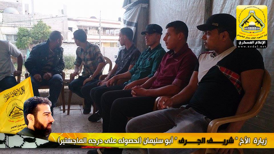 هو عهد الصادقين عهد الأوفياء قطعناه على أنفسنا ومضينا بثبات حاملين لهدف واحد هو تحرير فلسطين من بحرها الى نهرها ، ومضينا مسرعين نحو القدس نتطلع لتحريرها بكافة السبل ولأن العلم من أسمى الوسائل التي يُحرر بها الأوطان ، فقد تقدم وفد من كتائب شهداء الأقصى - فلسطين "لواء الشهيد نضال العامودي" بزيارة لبيت الأخ : شريف الجرف ، وذلك لتهنئته بحصوله على درجة الماجستير.