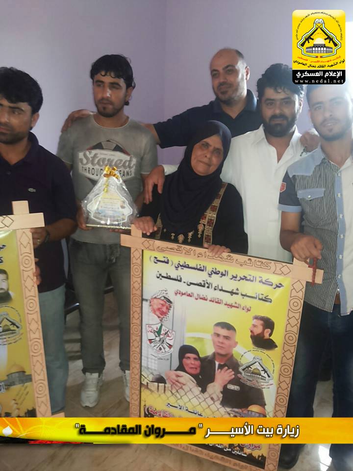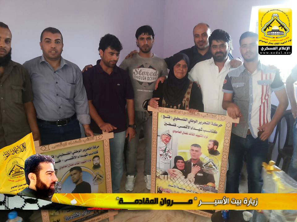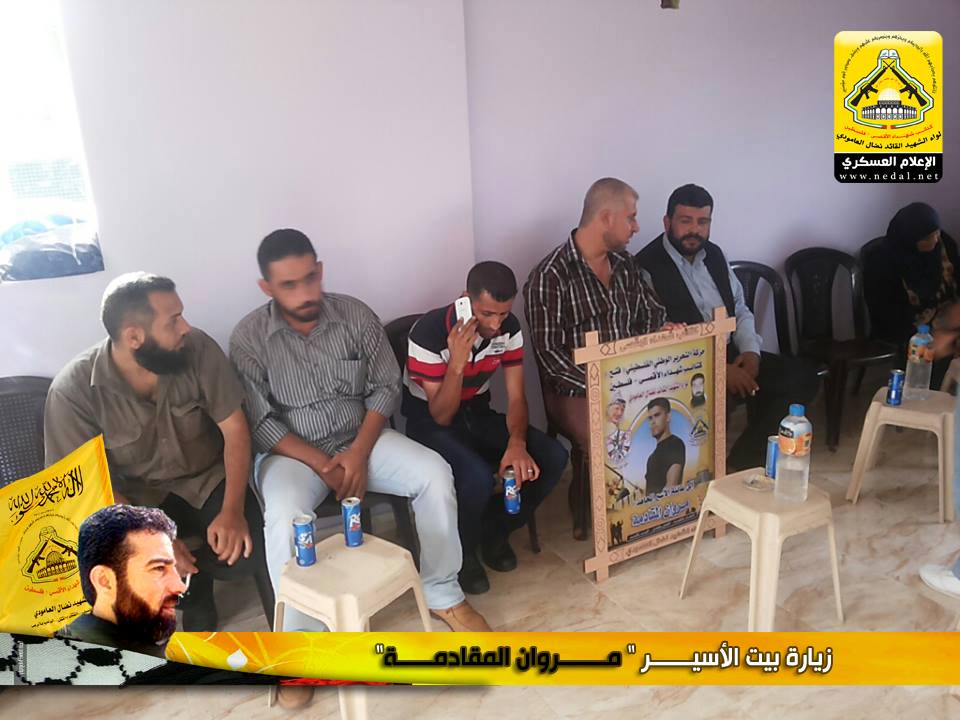 أسرانا يا تاج الفَخَار و يا فخَر الأمة ، يا من قهرتم العدو بصمودكم ويا من ضحيتم بكل ما تملكون وأفنيتم زهرة شبابكم ، يا أمجاد أمتنا و يا رمز كرامتنا و يا من أسقيتمونا كأس العزة ، أسرانا نرفع هاماتنا أمام ثباتكم ، لا ولن ننساكم وعهدنا تحريركم ولن يطول الليل فالفجر قريب ، ولأنهم الأسود في عرينهم والشامخون في زنازين العدو فقد توجه وفد من كتائب شهداء الأقصى - فلسطين (لواء الشهيد القائد / نضال العامودي) بزيارة لبيت الأسير : مروان المقادمة.