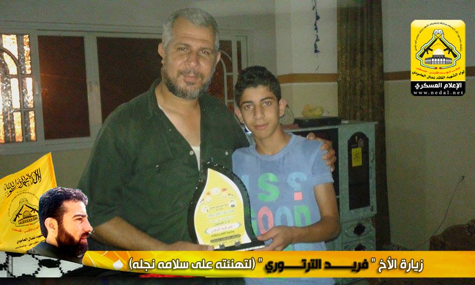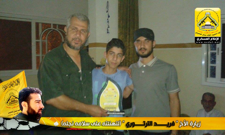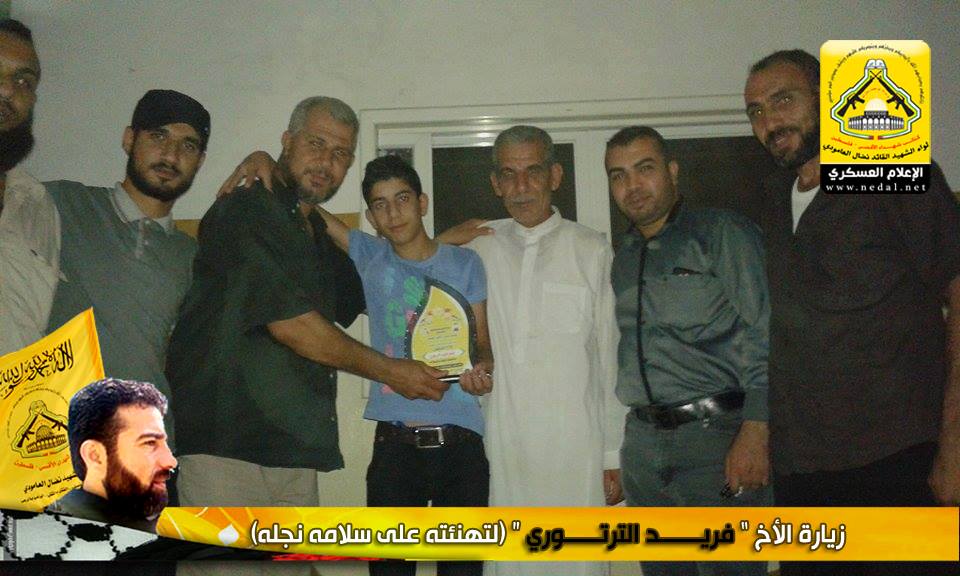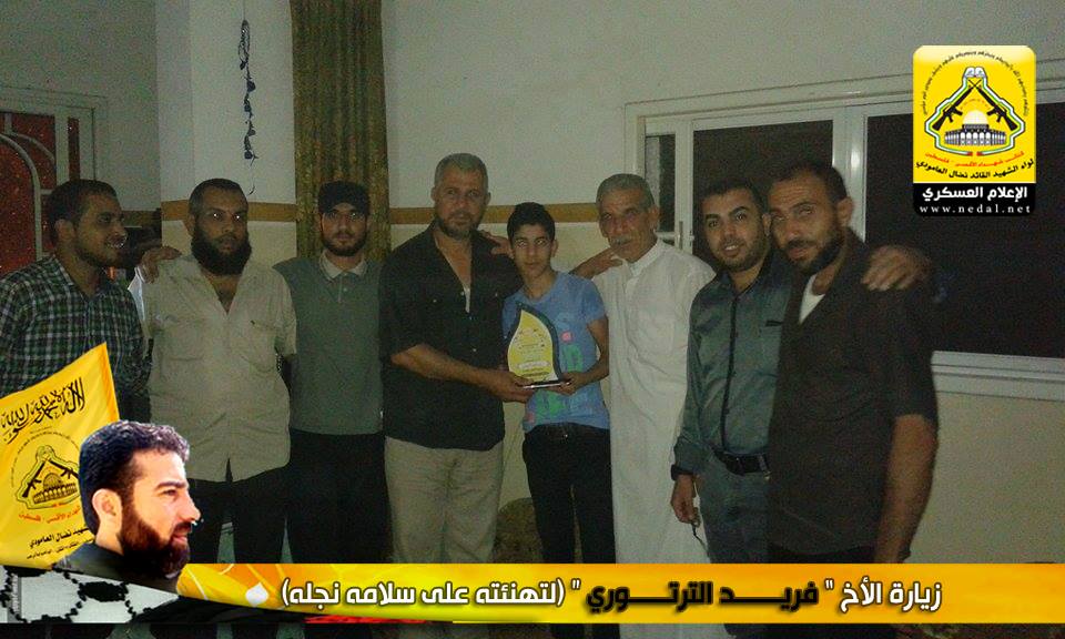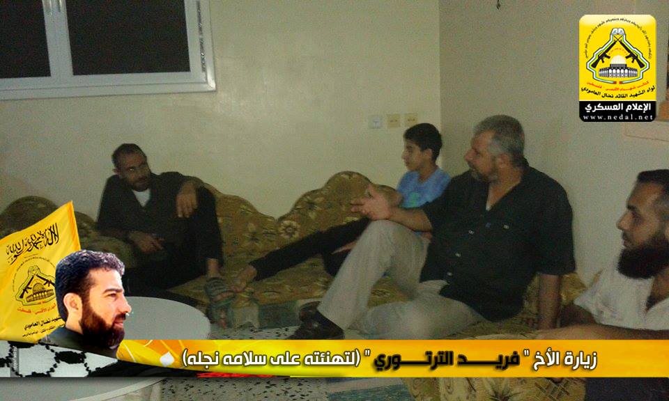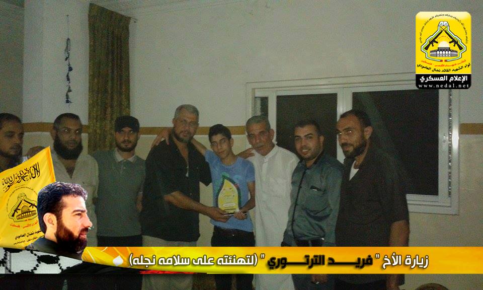نمضي بثبات حاملين لأمانة الشهداء والجرحى والأسرى فعهدنا هو عهد الأوفياء ، فرجال الحق يُبصرون في ساحات الوغى ويُلقنون العدو فنون القتال ، كيف لا وهم من رحم هذا الشعب المعطاء الصامد على أرضه ، فعزائمهم شامخة كشموخ جبال عيلبون ، ولأن الشعب الفلسطيني شعب مناضل معطاء فقد تقدم وفد من كتائب شهداء الأقصى - فلسطين "لواء الشهيد نضال العامودي" بزيارة لبيت الأخ المناضل : فريد الترتوري ، لتهنئته بسلامة نجله بعد اجرائه عملية جراحية.