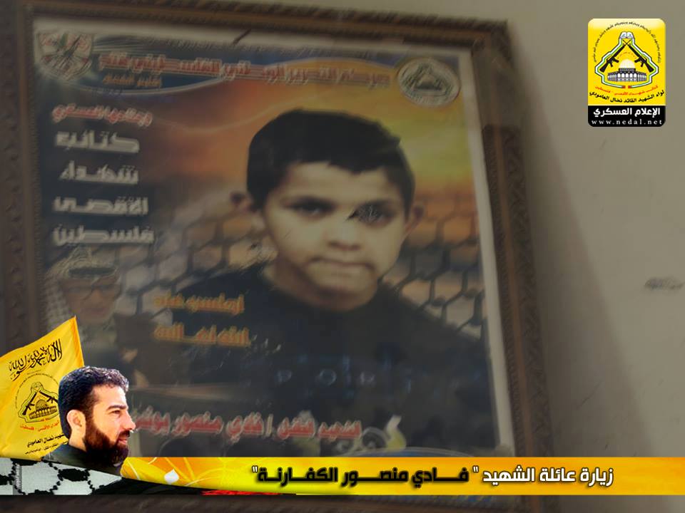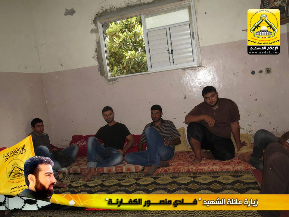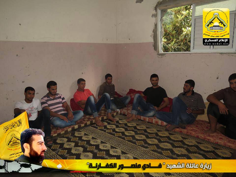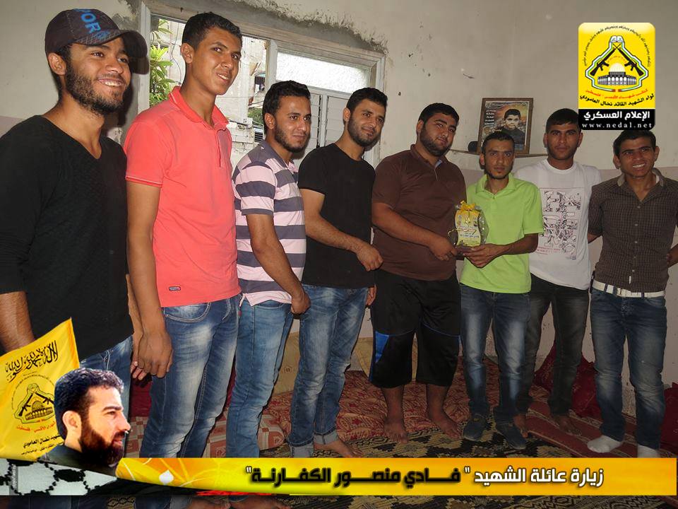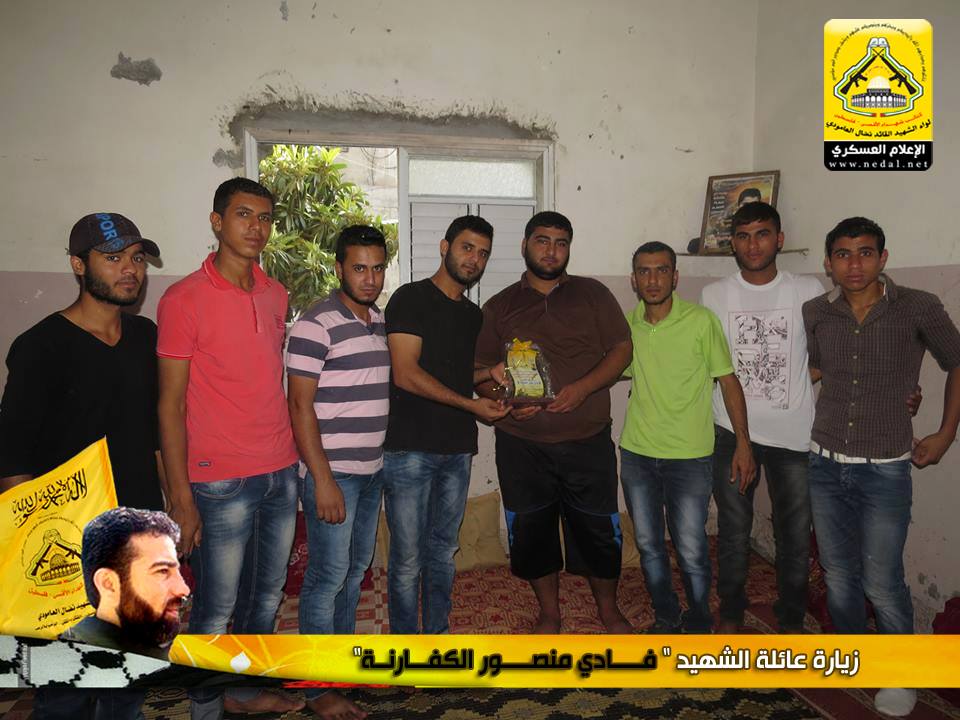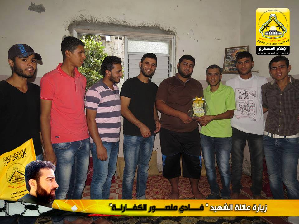 رغم مرور الوقت على رحيل الشهداء الا أن هذا اللواء العظيم سيبقى الأوفى لدمائهم والحافظ لنهجهم والماضي في دربهم ، كيف لا وأنتم شهداؤنا الأبطال مأثرنا ورمز عزنا ، يا من رحلتم عنا بأجسادكم وبقيت أرواحكم الطاهرة تمدنا بالعزيمة والاصرار ، فقد تقدم وفد من كتائب شهداء الأقصى – فلسطين (لواء الشهيد القائد / نضال العامودي) بزيارة لبيت عائلة الشهيد: فادي منصور الكفارنة ، لنقول لهذه العائلة المناضلة "والذي رفع السماء بلا عمد سنبقى الحافظين لوصايا الشهداء ولن نحيد عن دربهم فعهدنا عهد الأوفياء أن نبقى ماضون في طريق الجهاد حتى النصر أو الشهادة".