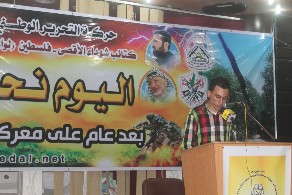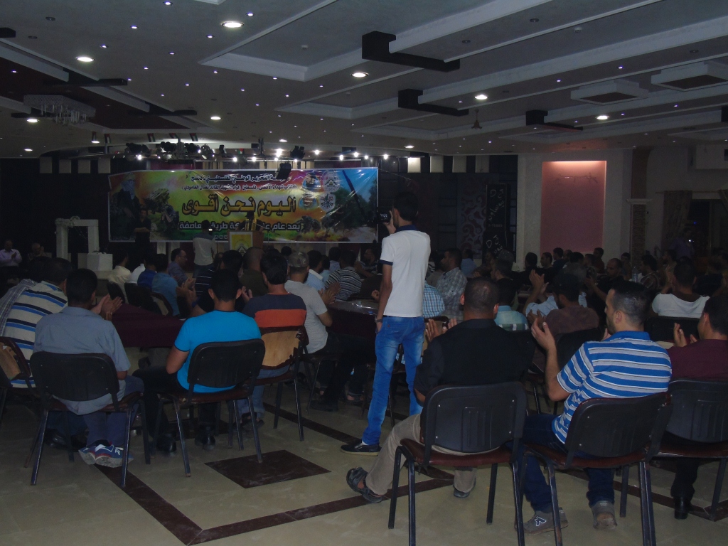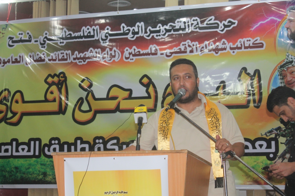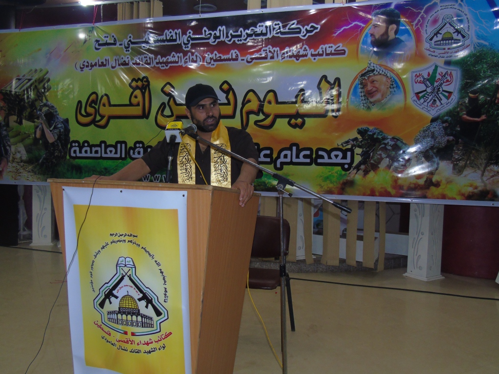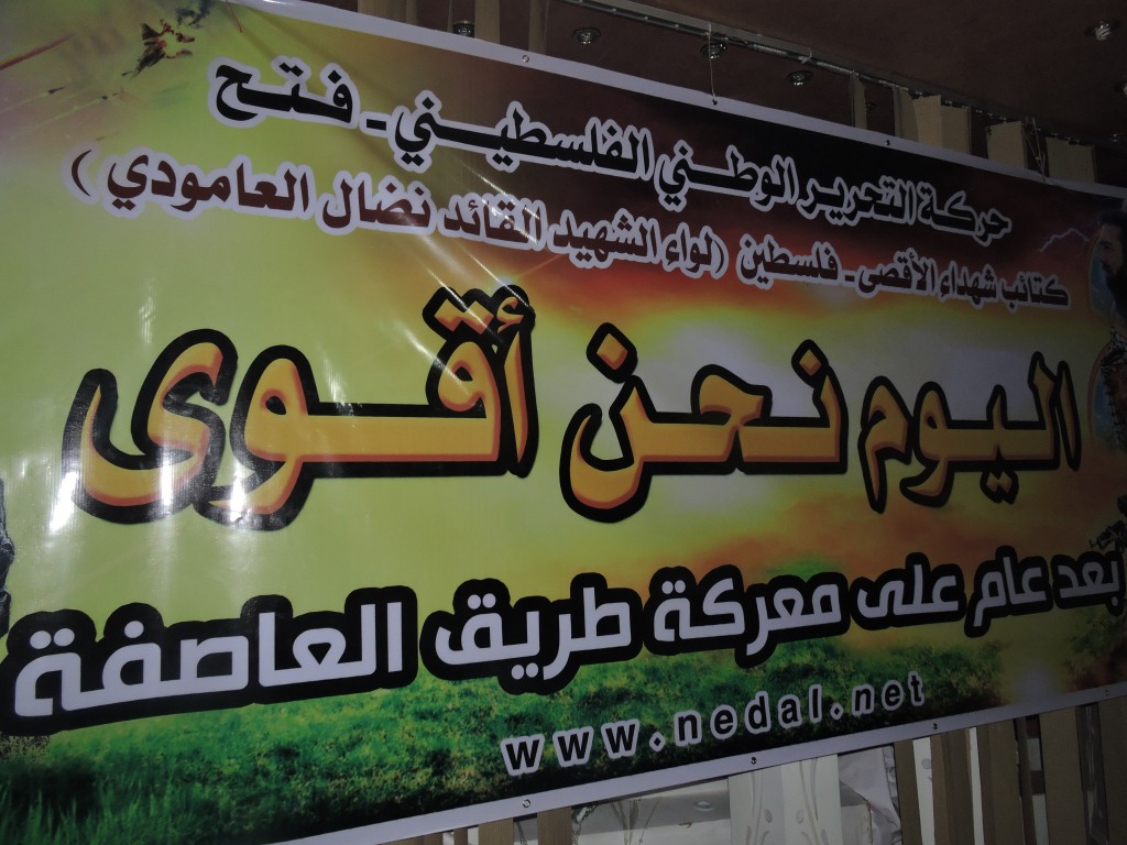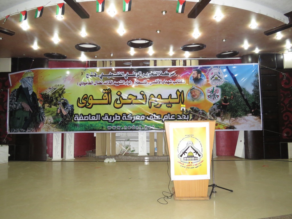 تحت شعار : " اليوم نحن أقوى " ، في الذكرى السنوية الأولى لمعركة "طريق العاصفة" نظمت كتائب شهداء الأقصى – فلسطين " لواء الشهيد القائد : نضال العامودي" الذراع العسكري لحركة فتح اليوم الثلاثاء ، حفل افطار جماعي لقيادات ومقاتلي الكتائب ، وبدأ الحفل بآيات عطرة من الذكر الحكيم ، تلاها السلام الوطني الفلسطيني .