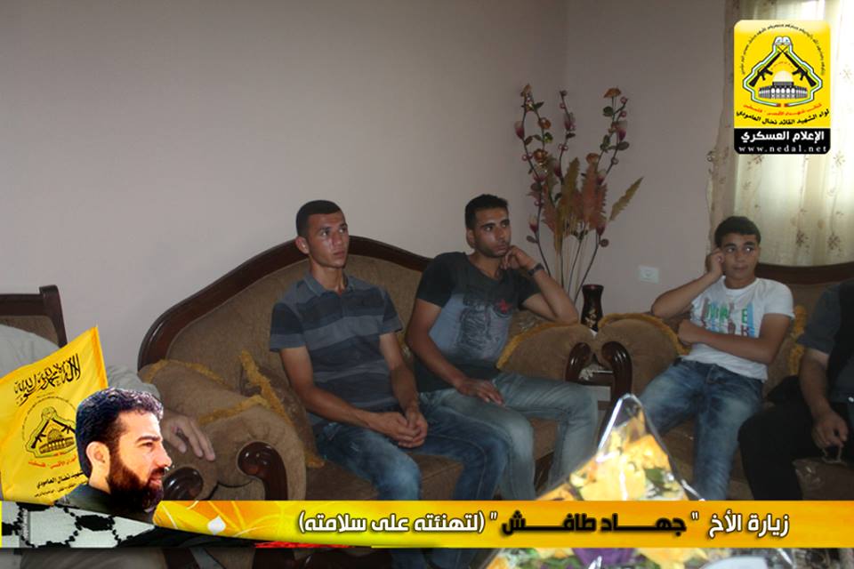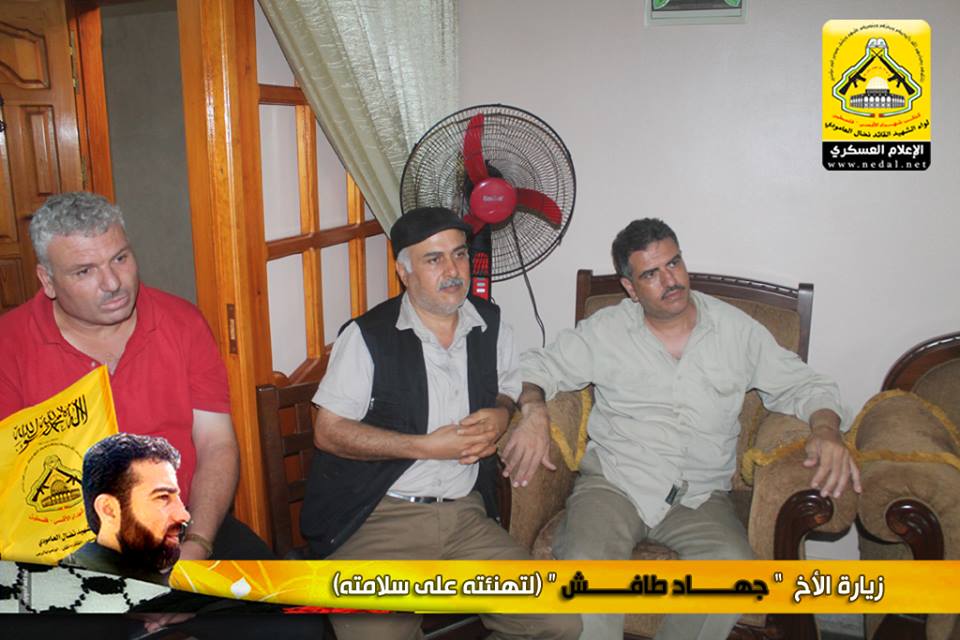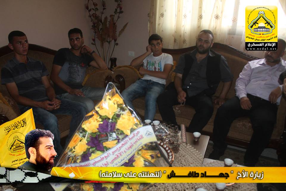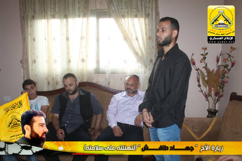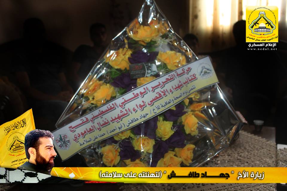 نمضي بثبات حاملين لأمانة الشهداء والجرحى والأسرى فعهدنا هو عهد الأوفياء ، فرجال الحق يُبصرون في ساحات الوغى ويُلقنون العدو فنون القتال ، كيف لا وهم من رحم هذا الشعب المعطاء الصامد على أرضه ،  فعزائمهم شامخة كشموخ جبال عيلبون ، ولأن الشعب الفلسطيني شعب مناضل معطاء فقد تقدم وفد من كتائب شهداء الأقصى - فلسطين "لواء الشهيد نضال العامودي" بزيارة لبيت الأخ المناضل : جهاد طافش ، وذلك لتهنئته بالسلامة.