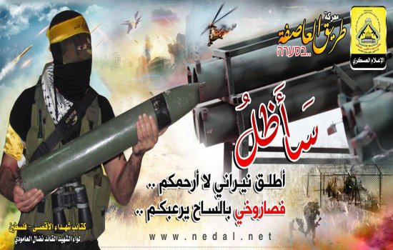 تسطر المقاومة في كل لحظة انتصارات متتالية لهذا الشعب العظيم , فاليوم قد تحطمه أركان هذا العدو الغاشم الذي تجبر بغطرسته , وكان لكتائب الأقصى لواء الشهيد القائد" نضال العامودي " كلمتهم حين تجرع العدو كأس الهزيمة بفعل الضربات الموجعة التي سحقت ناقلة جند صهيونية في شرق المنطقة الوسطي والصواريخ المباركة التى طالت مواقع ومغتصبات للكيان الصهيوني الهش.