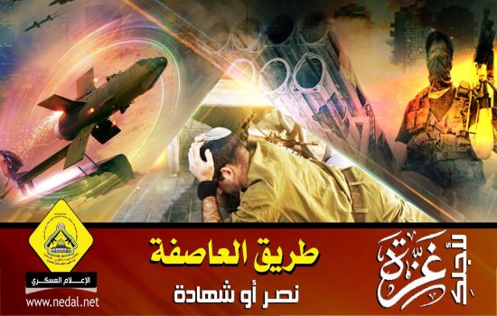 و بمعركة "طريق العاصفة" سنجعل الأرض بركاناً من تحت أقدام الصهاينة ، والنصر أت لا محالة وعلى العدو أن يرضخ لكافة شروط المقاومة ، وسيجر العدو أذيال الهزيمة وسيندحر عن قطاعنا الحبيب خاسئاً.