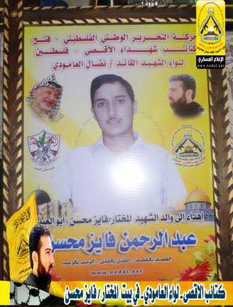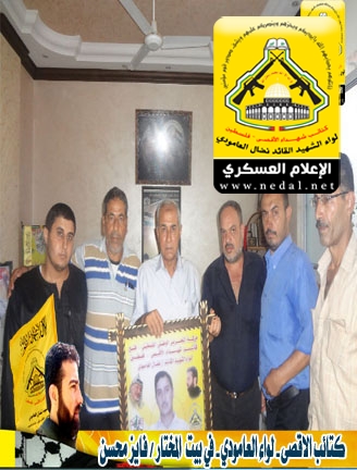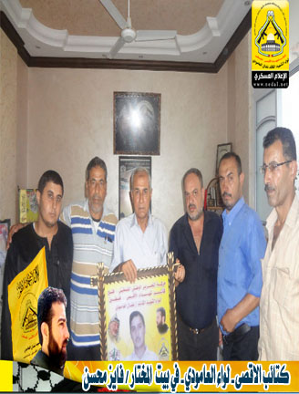 نمضي بثبات حاملين لأمانة الشهداء والجرحى والأسرى فعهدنا هو عهد الأوفياء ، فرجال الحق يُبصرون في ساحات الوغى ويُلقنون العدو فنون القتال ، كيف لا وهم من رحم هذا الشعب المعطاء الصامد على أرضه ، فعزائمهم شامخة كشموخ جبال عيلبون ، ولأن الشعب الفلسطيني شعب مناضل معطاء فقد تقدم وفد من كتائب شهداء الأقصى - فلسطين "لواء الشهيد نضال العامودي" بزيارة لبيت المختار : فايز محسن ، وذلك لإحياء ذكرى رحيل نجله الشهيد "عبد الرحمن" ، وتسلم المختار محسن صورة رمزية للشهيد تعبيراً عن وفاء الكتائب لشهداء شعبها ونضالاته.