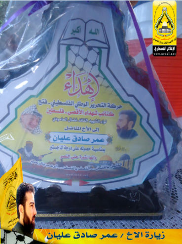 لذلك فقد توجهت  كتائب شهداء الاقصى فلسطين " لواء الشهيد نضال العامودي " ، لزيارة الأخ المناضل: عمر صادق عليان ، لتهنئته على حصوله  على درجة الماجستير ، متمنين له دوام التقدم والنجاح.