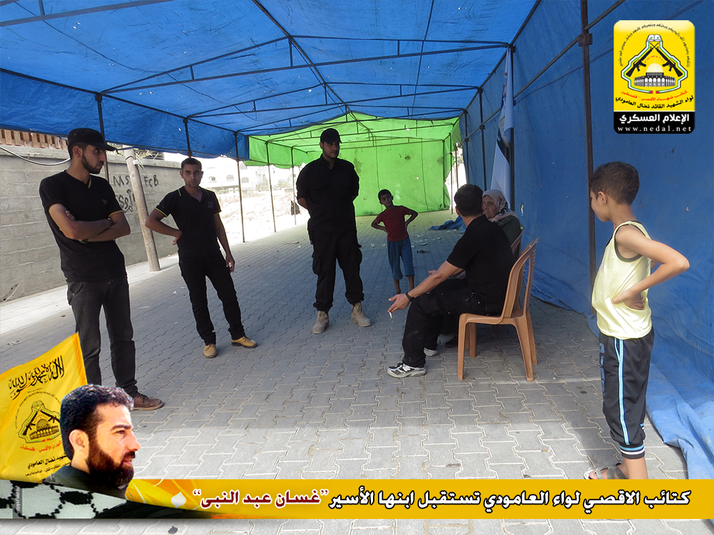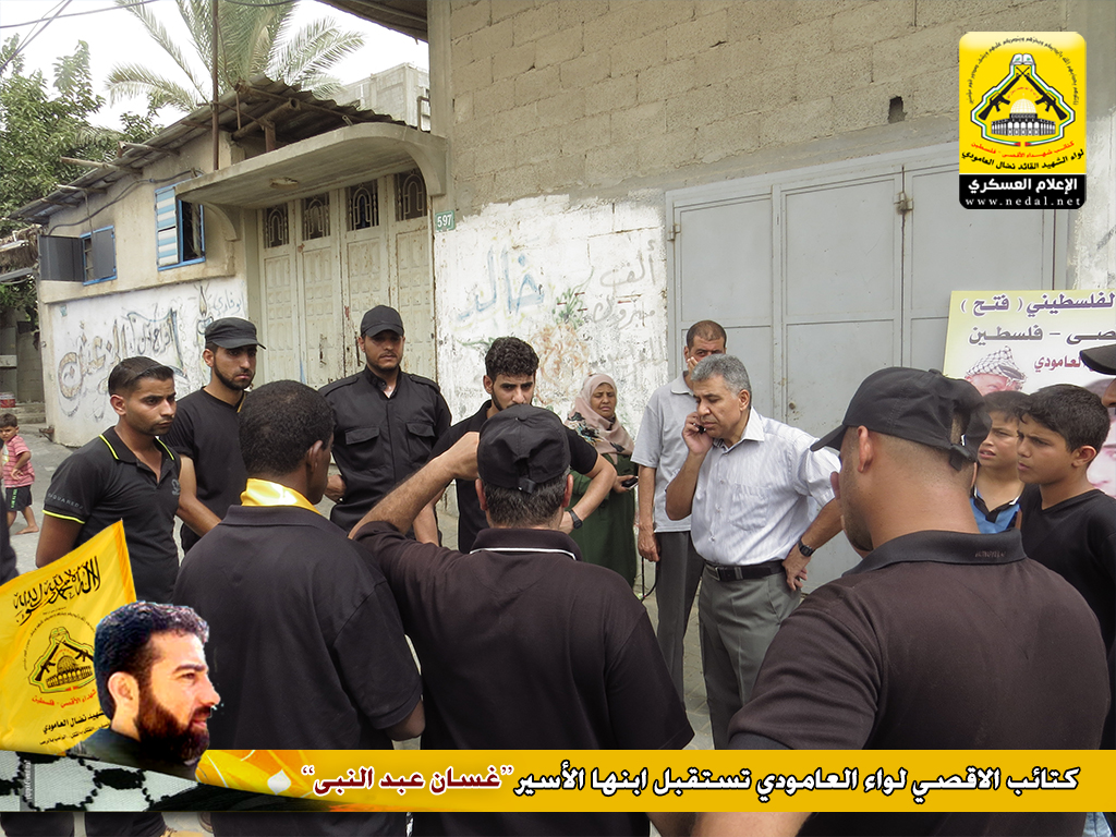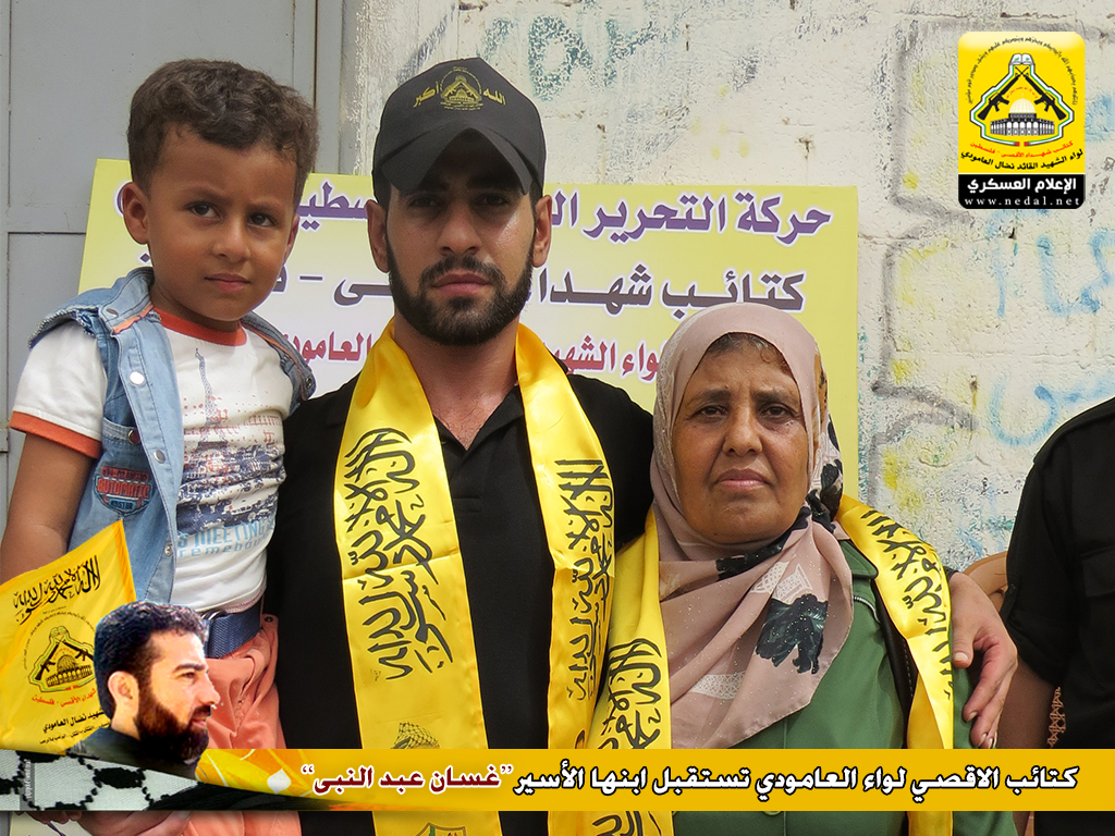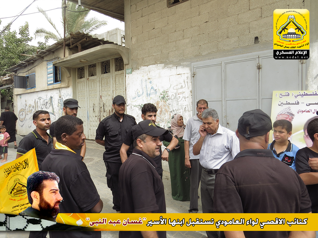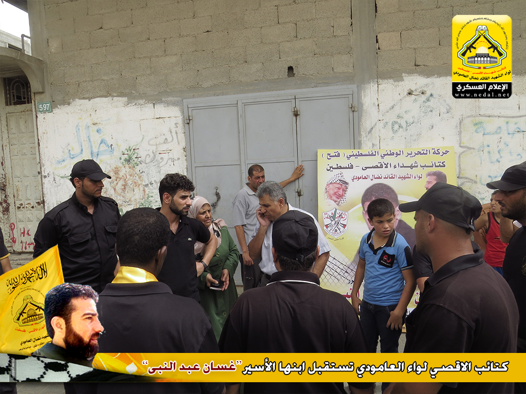هي الأوطان وان جارت لنا عزٌ هي عشقٌ والهامٌ نكرّسه ًوان جارت بها الأزمان واعتلّت نواصيها ، فأنتم ُ الأبطال وإن سجنت حريتكم ، أنتم لثورتنا كرامتها ، يا من لوحت وجوهكم شمس الصحاري في نفحة والنقب ، لأنهم الجنود المجهولين فقد استقبلت اليوم كتائب شهداء الأقصى – فلسطين "لواء الشهيد القائد نضال العامودي" ابن حركة فتح الأسير المحرر: غسان عبد النبي ، و كانت جماهير غفيرة من أبناء شعبنا الفلسطيني وكوادر اللواء في استقباله على معبر بيت حانون ورافقته كتائب الأقصى من معبر بيت حانون حتى منزله الكائن في شارع الجلاء وسط مدينة غزة.
