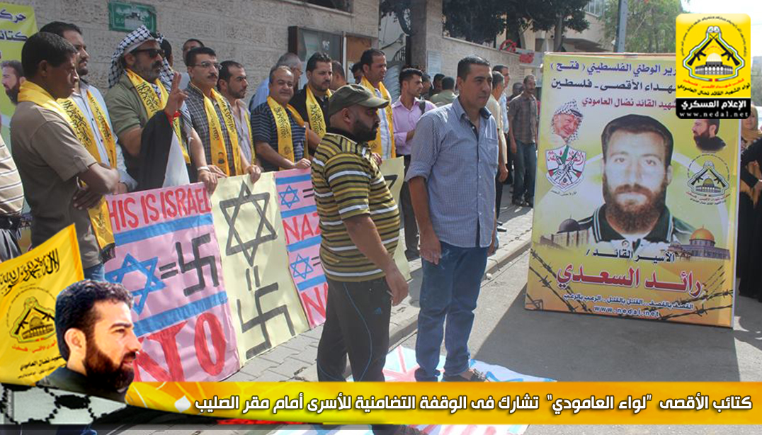 شارك وفد من كتائب شهداء الأقصى - فلسطين "لواء الشهيد القائد نضال العامودي" اليوم الاثنين ، في  الوقفة التضامنية مع الأسرى والتي تقام أسبوعياً أمام مقر الصليب الأحمر بمدينة غزة.