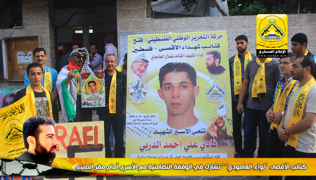 شارك وفد من كتائب شهداء الأقصى - فلسطين "لواء الشهيد القائد نضال العامودي" اليوم الاثنين ، في الوقفة التضامنية مع الأسرى والتي تقام أسبوعياً أمام مقر الصليب الأحمر بمدينة غزة.