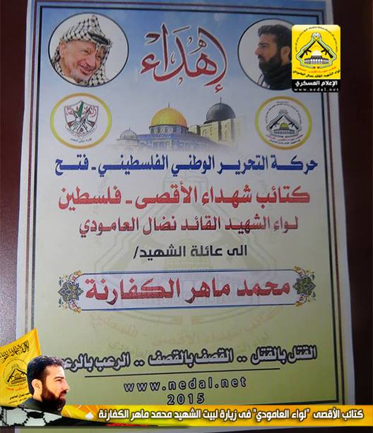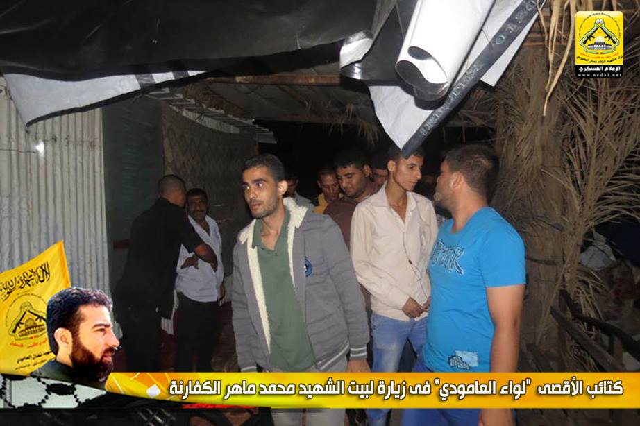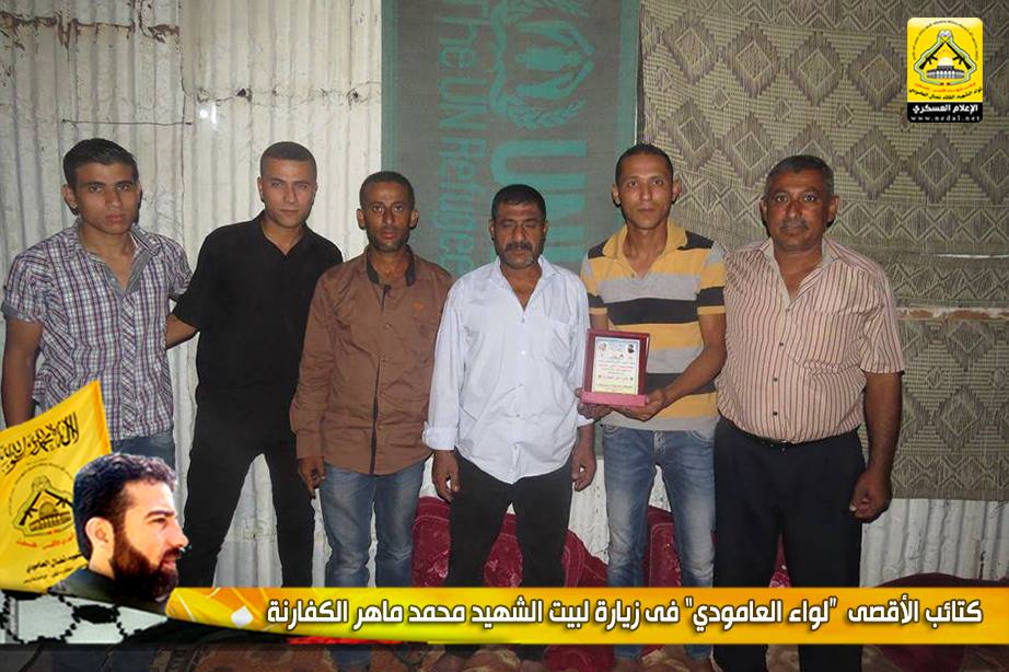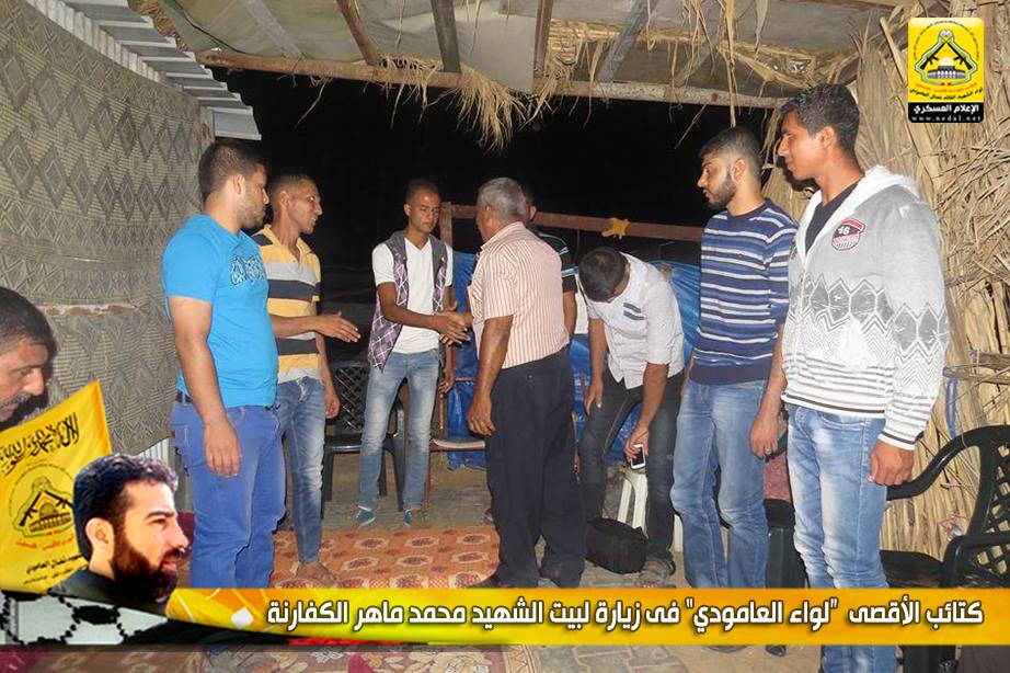 وتخليداً لذكرى الشهداء الأبطال فقد أحيت كتائب شهداء الأقصى - فلسطين "لواء الشهيد نضال العامودي" عبر زيارتها لبيت عائلة الشهيد : محمد ماهر الكفارنة.