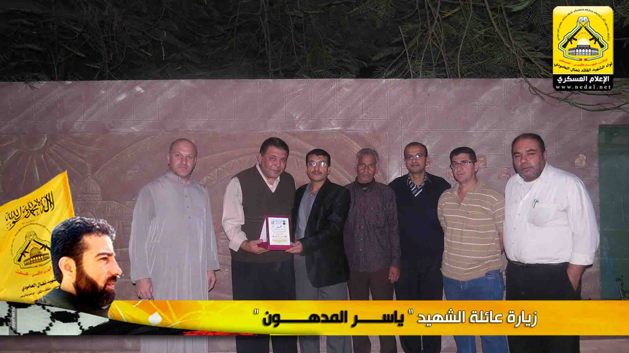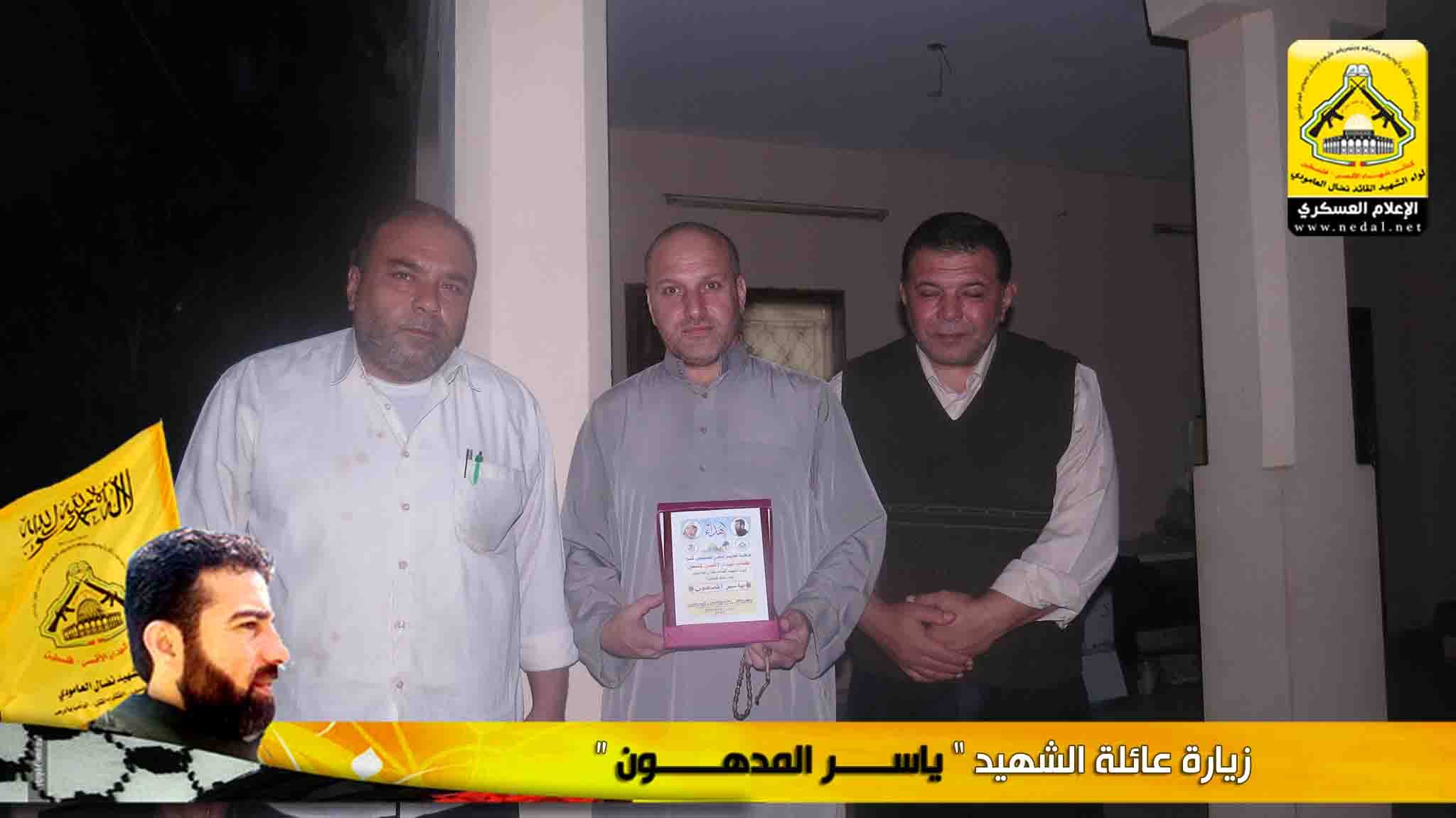 وتخليداً لذكرى الشهداء الأبطال فقد توجه وفد من كتائب شهداء الأقصى - فلسطين "لواء الشهيد نضال العامودي" بزيارة لبيت عائلة الشهيد : ياسر المدهون.