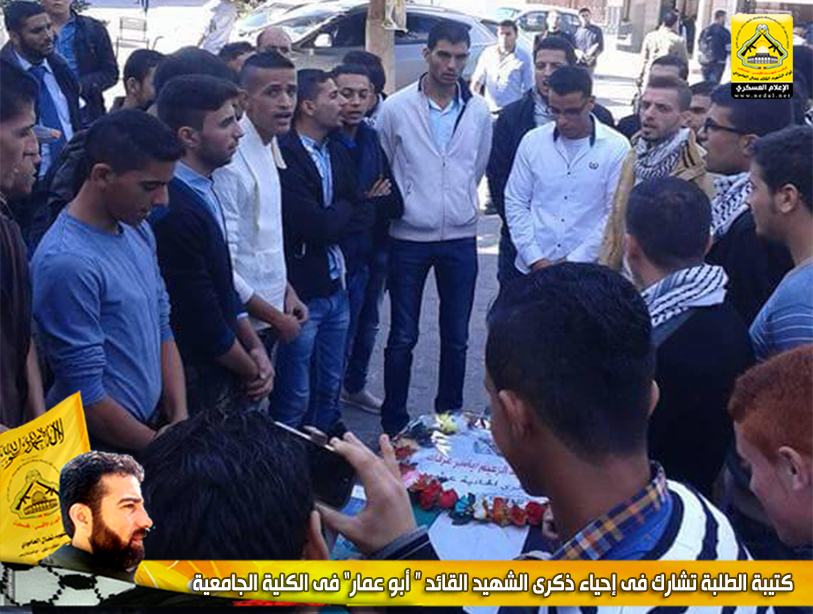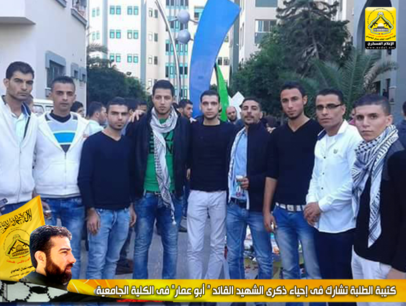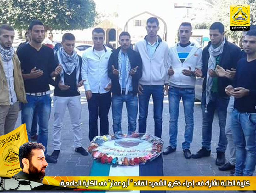 وقد شارك حشد من الطلبة في إحياء ذكرى إستشهاد القائد المؤسس أبو عمار للتأكيد على أن رحيل القائد الأول والمعلم الثوري الكبير لن يثني شعبنا عن الدفاع عن مقدساته وحقه في تقرير مصيره ، وأن هذا المعلم الكبير قد خط بعظيم عطائه وتضحياته معركة كبيرة جعل خلالها إسم فلسطين في كافة المحافل الدولية .