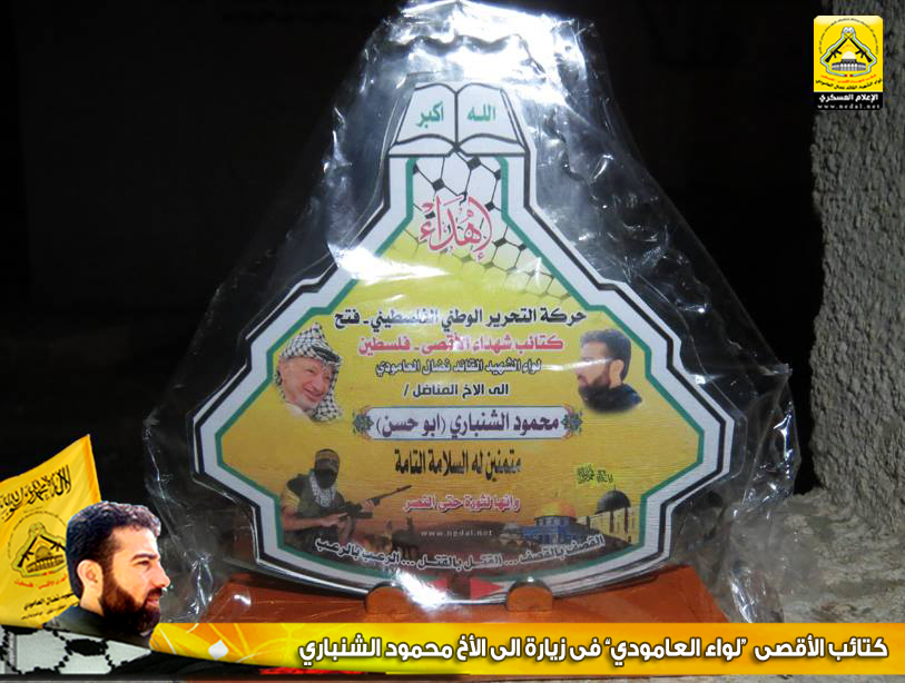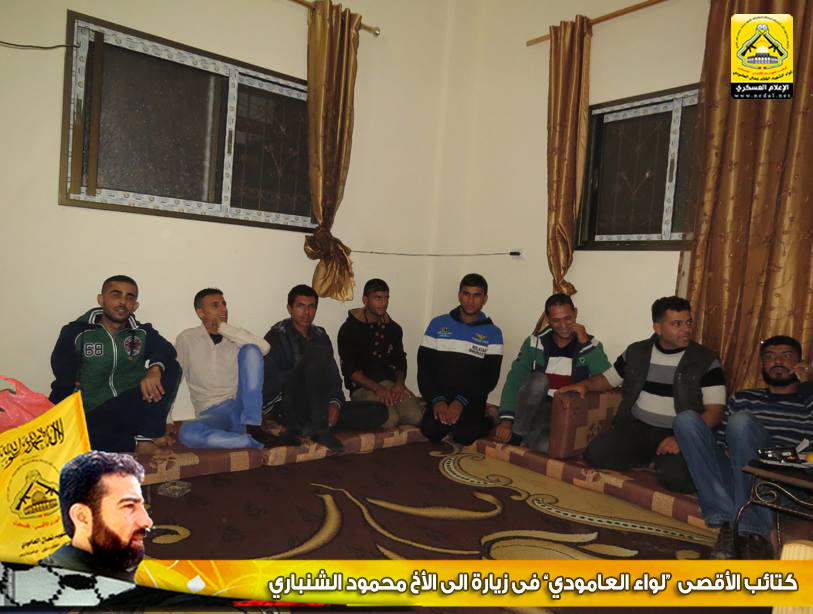 بجنود العز سندحر المحتل عن أرض الوطن ، رغم الجراح ، ورغم الألم ، سنمضي لجانب شعبنا نرفع عنه الظلم والأسى نقترب منه في كافة مناسباته ، بلواء نضال العامودي سيندحر المحتل وسنعيد للوطن مجده ولشعبنا حقه وللشهداء ثأرهم ، فاليوم قد توجه وفد من كتائب شهداء الأقصى - فلسطين "لواء الشهيد نضال العامودي" بزيارة لبيت الأخ المناضل : محمودالشنباري ، وذلك لتهنئته بالسلامة.