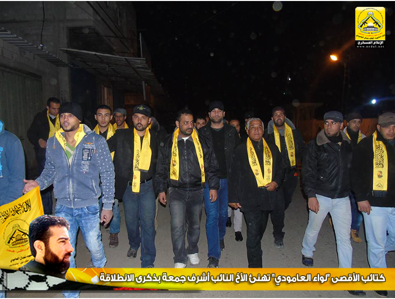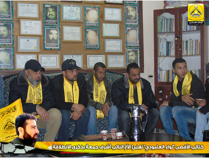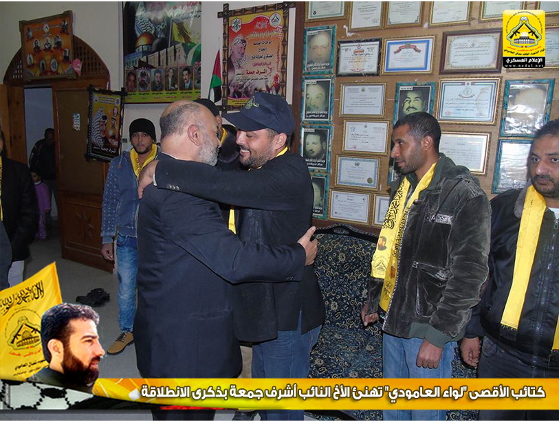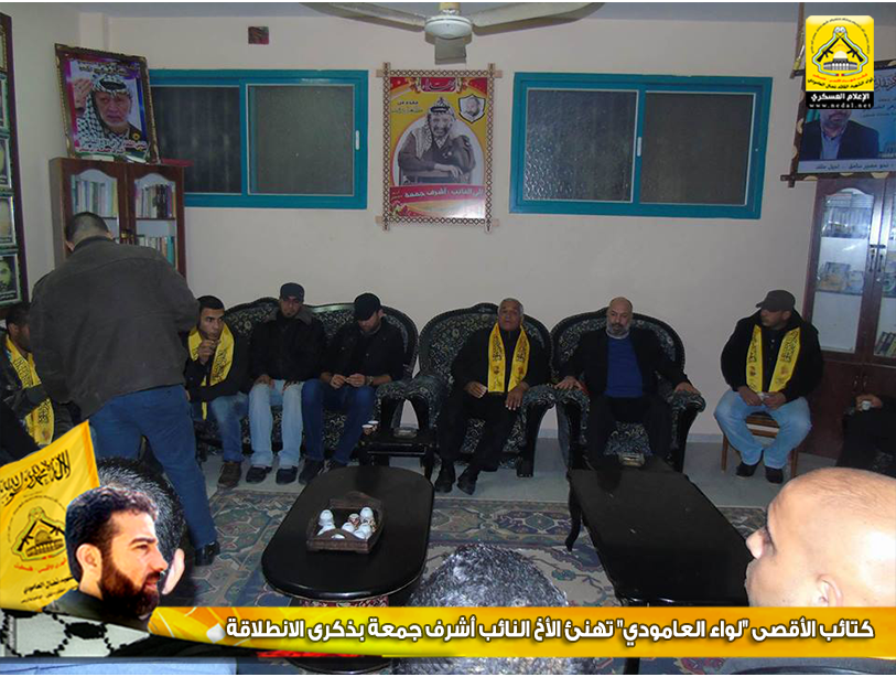 نمضي بثبات حاملين لأمانة الشهداء والجرحى والأسرى فعهدنا هو عهد الأوفياء ، فرجال الحق يُبصرون في ساحات الوغى ويُلقنون العدو فنون القتال ، كيف لا وهم من رحم هذا الشعب المعطاء الصامد على أرضه ، فعزائمهم شامخة كشموخ جبال عيلبون ، واليوم كان لقاؤنا من بيت رجل مناضل انتمى لحركة فتح وكان فارساً في كافة الميادين ، وضع هموم شعبه نصب أعينه ، نائباً في المجلس التشريعي ، يعمل ليل نهار لخدمة وطنه وشعبه، وفي الذكرى الـ51 لإنطلاقة المارد الفتحاوي فقد تقدم وفد من كتائب شهداء الأقصى - فلسطين "لواء الشهيد نضال العامودي" بزيارة لبيت النائب الفتحاوي : د.أشرف جمعة ، وذلك لتهنئته بإنطلاقة حركة فتح.