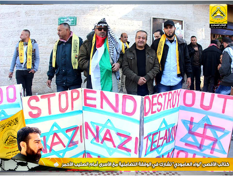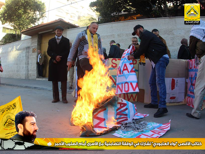 شارك وفد من كتائب شهداء الأقصى - فلسطين "لواء الشهيد القائد نضال العامودي" اليوم الاثنين ، في  الوقفة التضامنية مع الأسرى والتي تقام أسبوعياً أمام مقر اللجنة الدولية للصليب الأحمر بمدينة غزة.