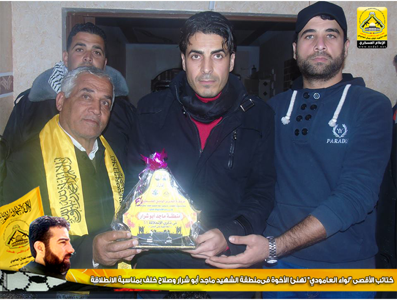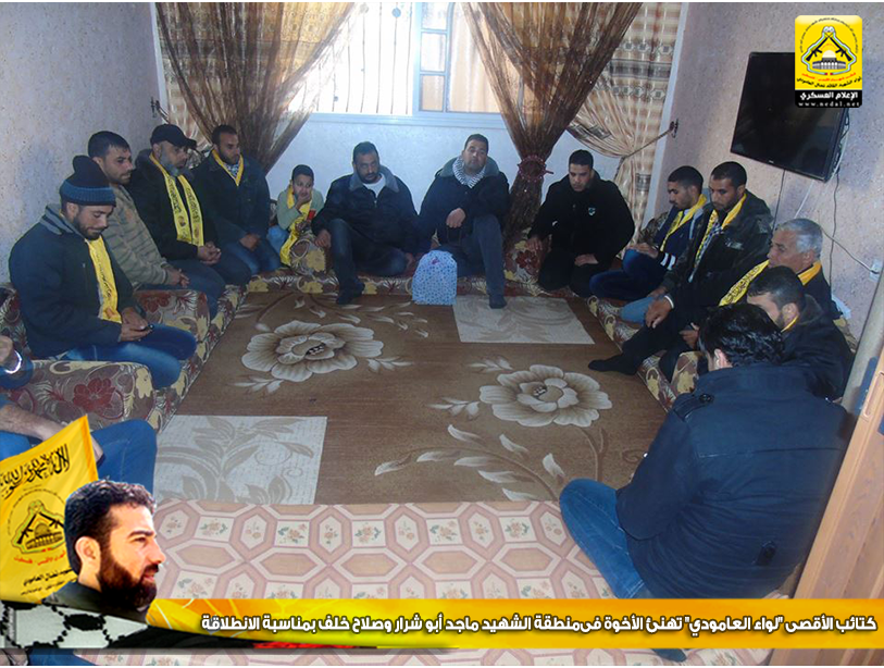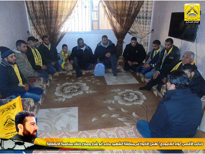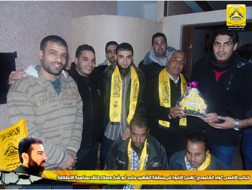 وفي الذكرى الـ 51 لإنطلاقة المارد الفتحاوي فقد تقدم وفد من كتائب شهداء الأقصى - فلسطين "لواء الشهيد القائد نضال العامودي" بزيارة للأخوة في حركة فتح إقليم رفح "منطقة الشهيد صلاح خلف والشهيد ماجد أبو شرار" ، تقديراً لعطائهم اللامحدود في خدمة وطنهم وحركتهم الرائدة "فتح" .