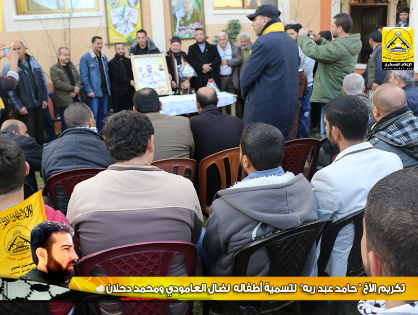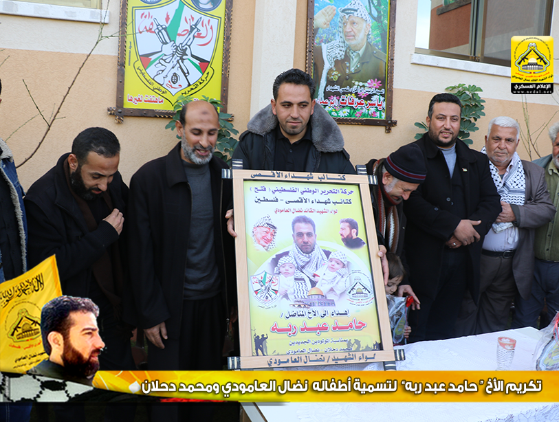 كرمت كتائب شهداء الأقصى - فلسطين "لواء الشهيد القائد نضال العامودي" الأخ المناضل : حامد عبد ربه ، وذلك لتسمية أطفاله الاثنين بإسم الشهيد القائد نضال العامودي ، والأخ محمد دحلان ، تيمناً بالشهيد القائد المؤسس لكتائب الأقصى نضال العامودي" أبا حسين" .