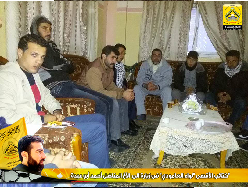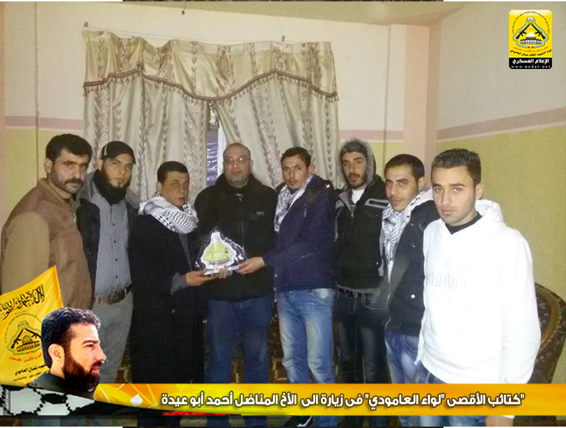 وتقدم الأخ : أبو عمر، في كلمة الكتائب بالتحية للأخ المناضل أحمد أبو عيدة، مؤكداً على الدور الريادي له في خدمة وطنه وحركته الرائدة فتح، من جهته عبر الأخ أحمد عن عظيم شكره للوفد الزائر، مؤكداً أن كتائب الأقصى "لواء العامودي" كانت ولا زالت في الصدارة وفي طليعة العمل المقاوم، وفي نهاية اللقاء تسلم الأخ درع الكتائب.