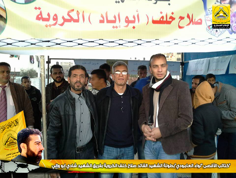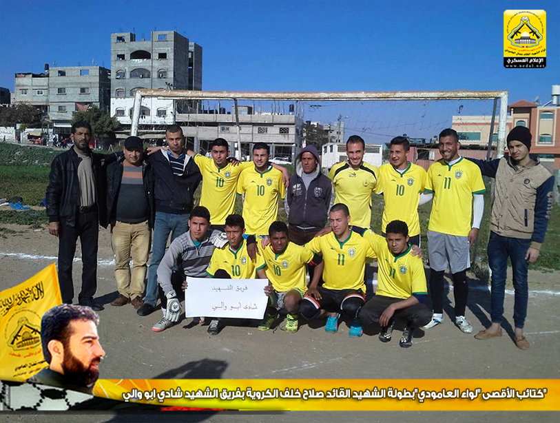 شاركت كتائب شهداء الأقصى - فلسطين " لواء الشهيد القائد نضال العامودي " في بطولة الشهيد القائد صلاح خلف الكروية بفريق الشهيد شادي ابو والي، والتى نفذها إقليم شرق غزة لمناطقه التنظيمية وكان ذلك عبر مشاركة كل منطقة بفريق يحمل إسم شهيدها، وكانت مشاركة الكتائب باسم فريق الشهيد شادي ابو والي .