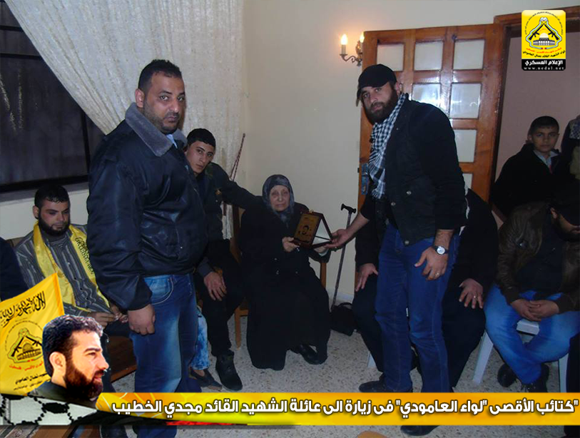 وتسلمت عائلة الخطيب، درع الكتائب تقديراً منها لهذه العائلة المناضلة التي قدمت الشهداء، ولا زالت على العهد ماضية، تجود بكل غالٍ ونفيس من أجل وطنها .
