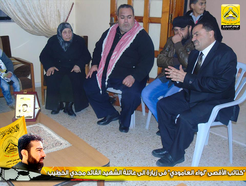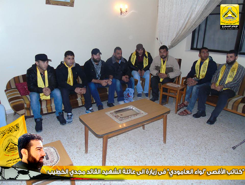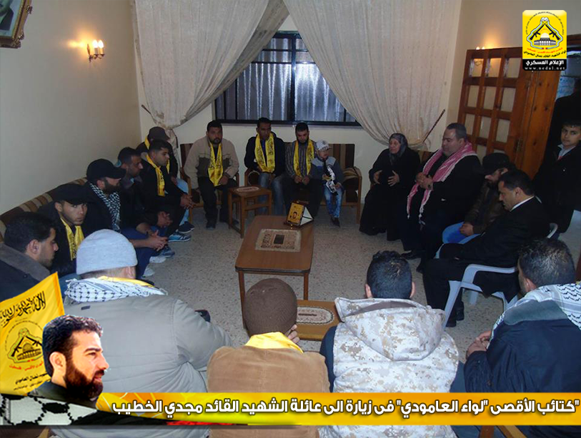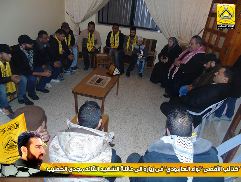 فيما تقدمت عائلة الخطيب بالتحية للوفد الزائر لبيتها، مؤكدةً أن كتائب الأقصى "لواء العامودي" الأقدر والأحرص على حمل الإرث الوطني الذي خلفه الشهيد القائد ياسر عرفات ورفاق دربه .