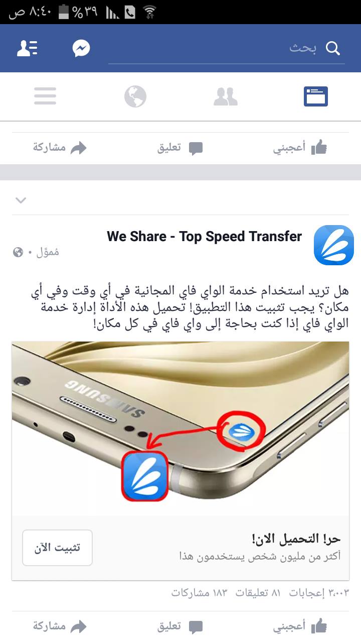 تنتشر عبر مواقع التواصل الاجتماعي اعلانات ممولة حول استخدام شبكة الواي فاي بالمجان ومفاد هذه الرسالة كما بالصورة اسفل.