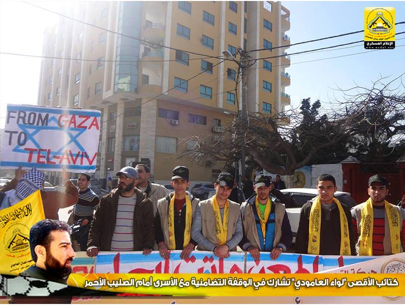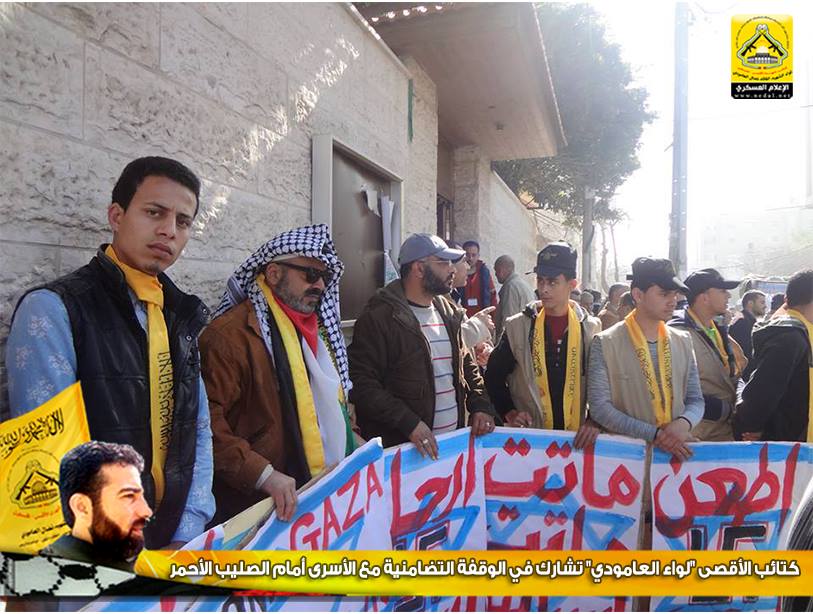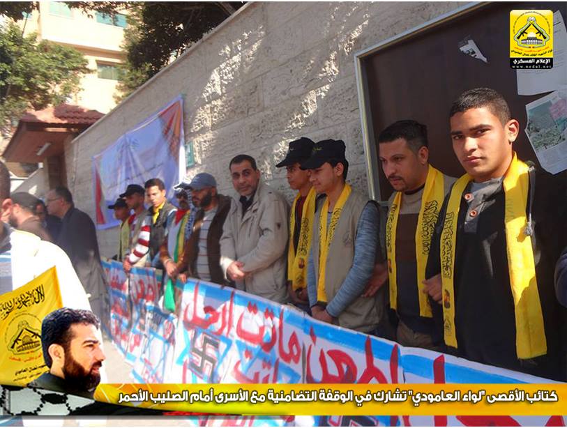 شارك وفد من كتائب شهداء الأقصى - فلسطين "لواء الشهيد القائد نضال العامودي" اليوم الاثنين ، في الوقفة التضامنية مع الأسرى والتي تقام أسبوعياً أمام مقر اللجنة الدولية للصليب الأحمر بمدينة غزة.