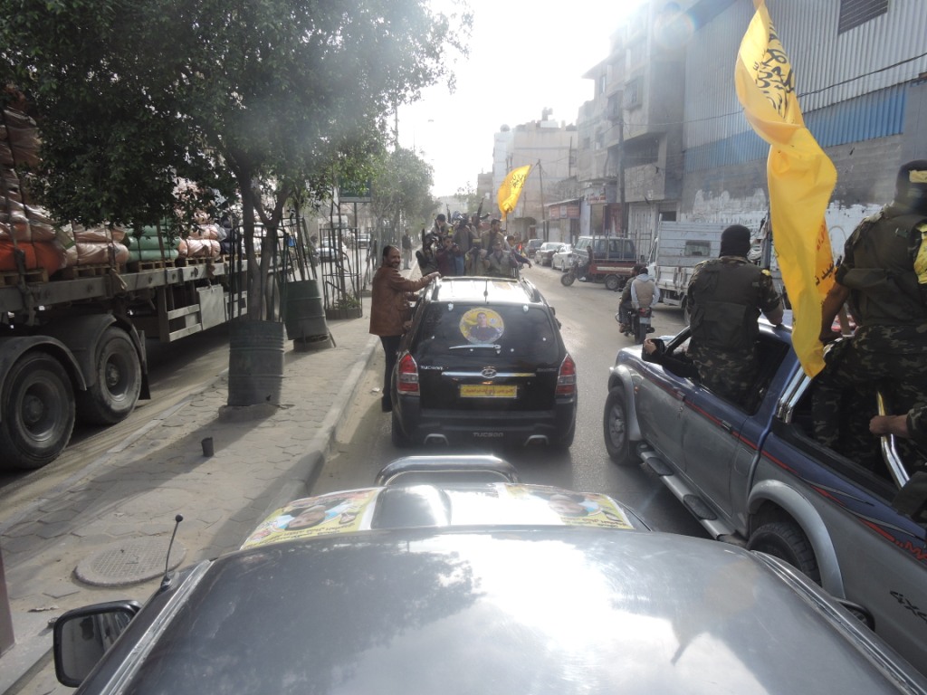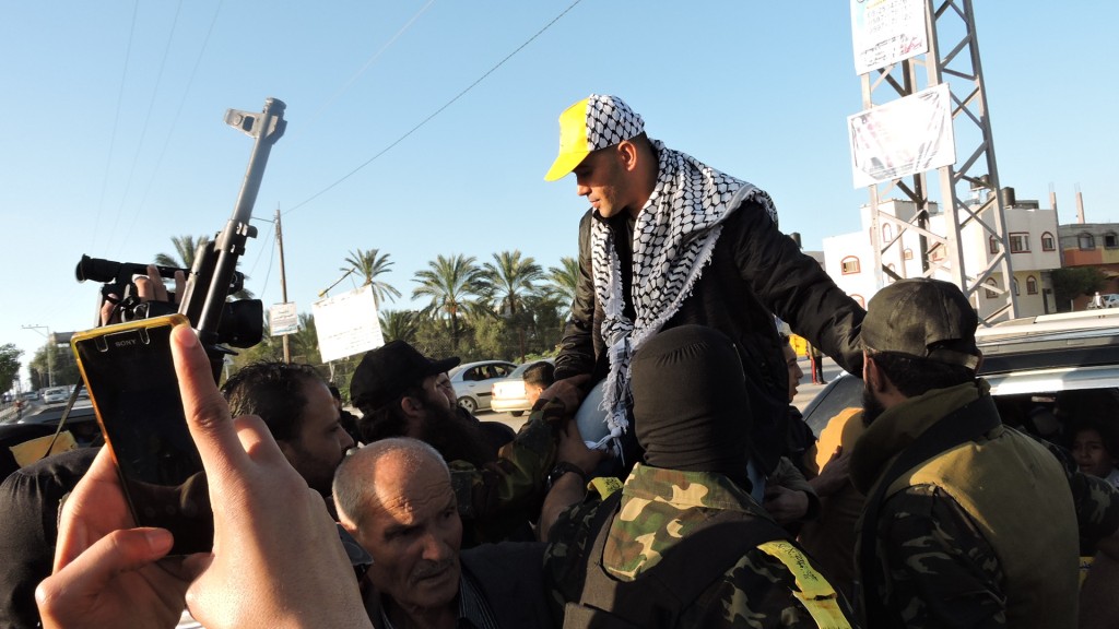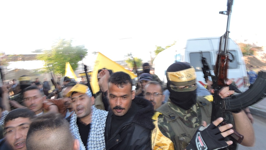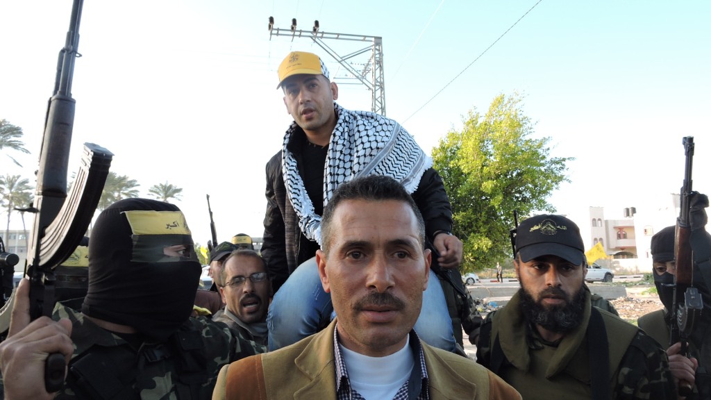 و كان رفاق درب الأسير المحرر، من مقاتلين كتائب الأقصى "لواء العامودي"، و جماهير غفيرة من أبناء شعبنا الفلسطيني وكوادر اللواء في استقباله على معبر بيت حانون وقد رافقه مقاتلين الكتائب من معبر بيت حانون حتى منزله الكائن في مدينة دير البلح وسط قطاع غزة.