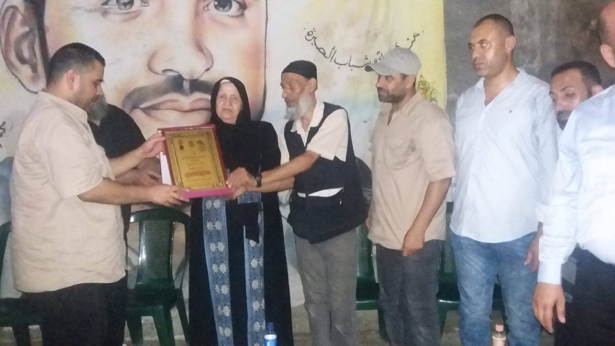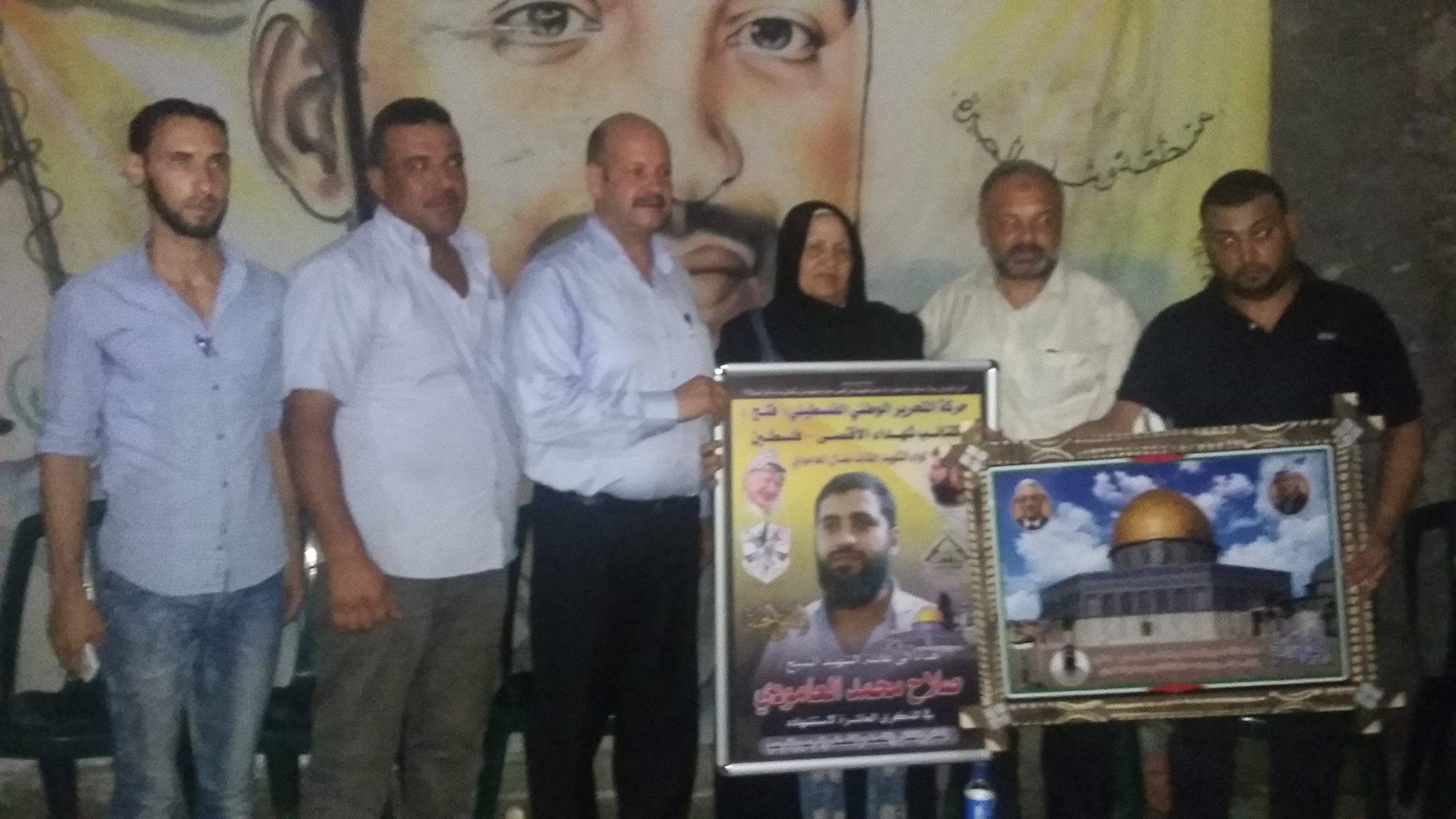 وسلمت حركة فتح عائلة الشهيد، صورة الكتائب تقديراً منها لهذه العائلة المناضلة التي قدمت الشهداء ,مؤكدةً على أنها ماضية على العهد حتى تحريركامل فلسطين وإقامة الدولة الفلسطينية.