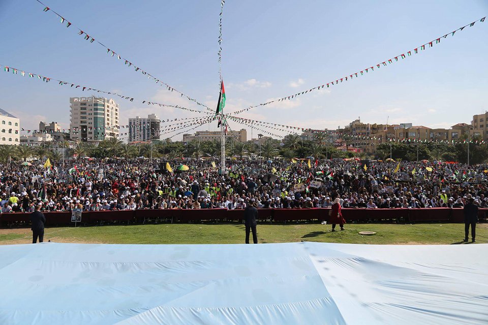 ومن جهته دعا  القيادي في حركة حماس خليل الحية خلال كلمه حركته بالمهرجان  إلى تشكيل حكومة وحدة وطنية وإجراء الانتخابات للخروج من الوضع الفلسطيني الراهن.