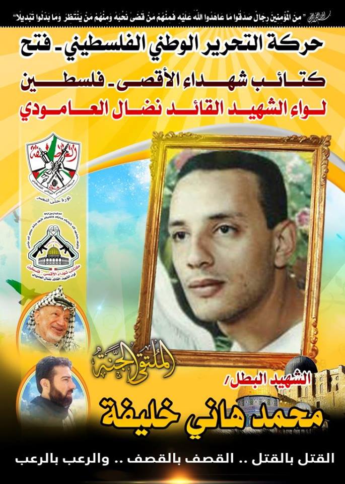 فإننا اليوم في كتائب شهداء الأقصى - فلسطين لــواء الشهيد القائد " نضال العامودى " نحيي ذكرى إستشهاد المجاهد " محمد خليفة " وننحني إجلالاً وإكباراً لروحه الطاهرة في ذكرى إستشهاده التي ستبقى خالدة في قلوب كل الشرفاء من أبناء شعبه المجاهد.