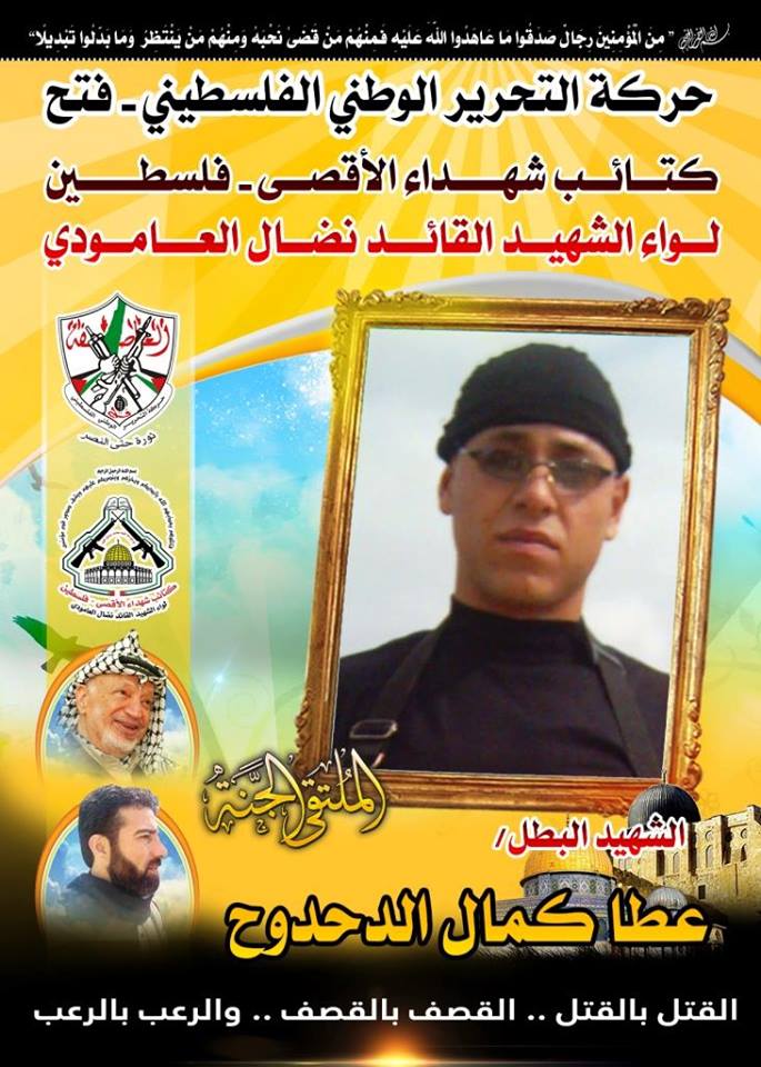 فإننا اليوم في كتائب شهداء الأقصى - فلسطين لواء الشهيد القائد" نضال العامودي"، نبرق بتحية إجلال وإكبار لروح شهيدنا " عطا الدحدوح " وكافة الشهداء الأبطال معاهدين الله عزوجل أن نمضي قدما على طريقهم النضالى حتى نلقا الله شهداء.