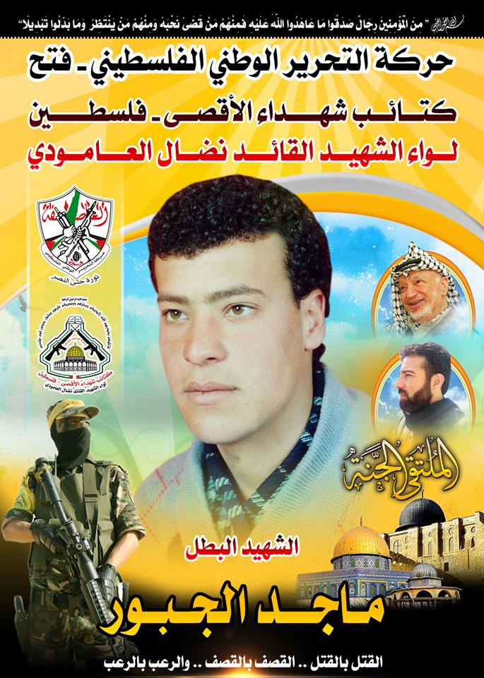 فإننا اليوم في كتائب شهداء الأقصى - فلسطين لواء الشهيد القائد " نضال العامودي" ننحني إجلالاً وإكباراً لروح شهيدنا الصقر، ماجد الجبور ، مجددين العهد والقسم مع الله ثم لدمائهم الذكية، بأن نمضي قدماً على طريقهم النضالي الذي مضى وقضى عليه خيرة أبناء شعبنا من الشهداء العظام .