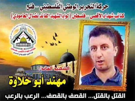 فإننا اليوم فى " كتائب شهداء الأقصى "- فلسطين لواء الشهيد القائد" نضال العامودي"،نُحيي ذكرى إستشهاد أبرزقادة كتائب شهداء الأقصى الذراع العسكرى لحركة التحرير الوطنى الفلسطينى " فتح " بالضفة الغربية الشهيد القائد " مهند أبو حلاوة  عمر قعدان وفوزي مرار" معاهدين الله عز وجل، ان نمضي قدماً على طريقهم النضالي الذي مضى وقضى عليه الآف الشهداء من أبناء شعبنا البطل، حتى نيل كامل حقوقنا المشروعة، او الإلتحاق بكوكبة الشهداء التي سبقتنا .