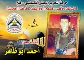 تحل علينا اليوم السادس من شهر مارس الذكرى السنوية لإستشهاد المقاتل " أحمد فريج أحمد أبو ظاهر"،أحد مقاتلى كتائب شهداء الأقصى الذراع العسكرى لحركة التحرير الوطنى الفلسطينى "فتح"،والذى إستشهد بتاريخ 6.3.2002 م.