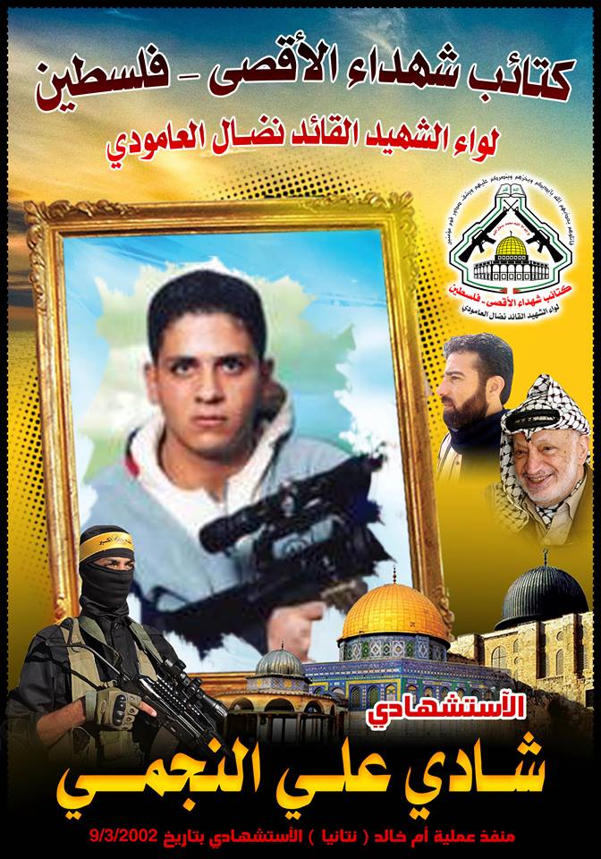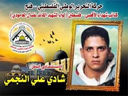 إنه الإستشهادي " شادى على النجمى" إبن كتائب شهداء الأقصى الذي ترجم حبه وإنتمائه لفلسطين قولاً وفعلاً بعد مسيرة نضالية توج فصلها الأخير بالشهادة في سبيل الله .