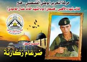 فإننا اليوم فى كتائب شهداء الأقصى - فلسطين لواء الشهيد القائد " نضال العامودي" لن ندع هذه الذكرى العطرة أن تمر مرور الكرام دون أن نضع لمسات من الوفاء لروح الشهيد البطل " ضرغام زكارنة "الذي نحيي ذكراه ونؤكد بأننا لن ننساه وسيبقى متربعاً في قلوبنا حتى نلقاة شهداء على ذات الدرب بإذن الله .