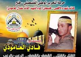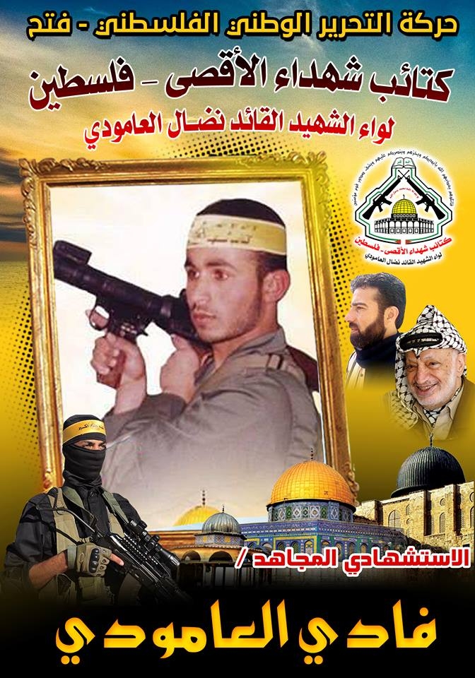 فإننا اليوم في كتائب شهداء الأقصى – فلسطين لواء الشهيد القائد " نضال العامودي"، نحيي ذكرى إستشهاد المجاهد الإستشهادى " فادى العامودي"،وإذ ننحنى إجلالاً وإكباراً لروح شهيدنا المجاهد في ذكرى إستشهاده ونعاهد الله أن نبقى الأوفياء لدمائه الطاهرة التي روت أرض القدس المحتلة.