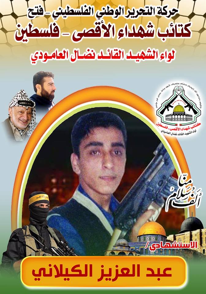 يصادف اليوم السابع عشر من شهر مايو الذكرى السنوية لإستشهاد المجاهد الإستشهادى البطل " عبد العزيز غازى الكيلانى " أحد مجاهدى " كتائب شهداء الأقصي " الذراع العسكري لحركة التحرير الوطنى الفلسطينى " فتح " ..