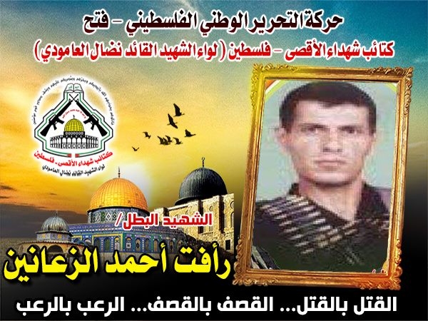 فإننا اليوم في كتائب شهداء الأقصى - فلسطين لــواء الشهيد القائد " نضال العامودي"،نحيي ذكرى إستشهاد القائد،رأفت الزعانين وننحني إجلالاً وإكباراً لروحه الطاهرة في ذكرى إستشهاده التي ستبقى خالدة في قلوب كل الشرفاء من أبناء شعبه المجاهد .