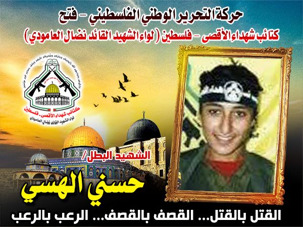 فإننا اليوم في كتائب شهداء الأقصى – فلسطين لواء الشهيد القائد " نضال العامودي " نستذكر شهيدنا المجاهد حسنى الهسي, ونجدد العهد والقسم لروحه الطاهرة في ذكرى إستشهاده التي ستبقى خالدة في قلوب كل الشرفاء.