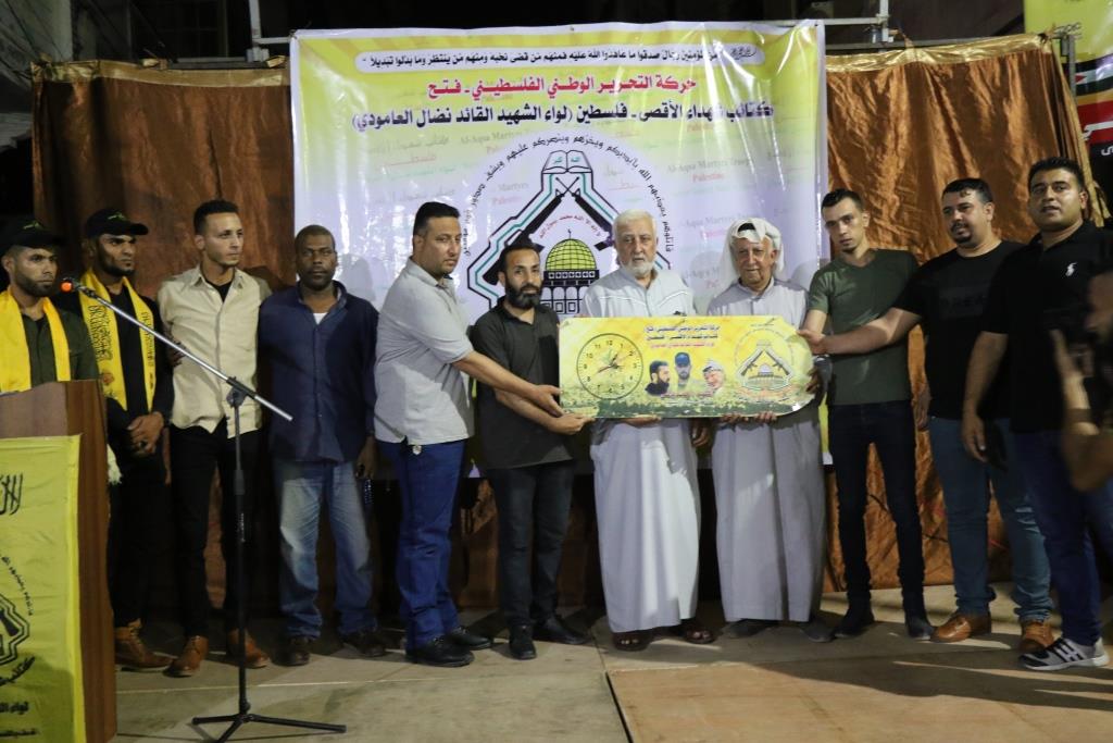 وقـد انتهت الفعالية بتسليم عائلة الشهيد درع الكتائب إهداء و وفاء من كتائب شهداء الأقصى فلسطين إلي كل المناضلين الذين افنوا حياتهم دفاعا عن ارض فلسطين الطاهرة .