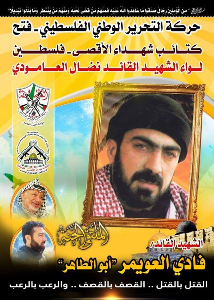 فإننا اليوم في كتائب شهداء الأقصى - فلسطين لــواء الشهيد القائد " نضال العامودي "،نحيي ذكرى إستشهاد القائد، " فادى عويمر "،وننحني إجلالاً وإكباراً لروحه الطاهرة في ذكرى إستشهاده التي ستبقى خالدة في قلوب كل الشرفاء من أبناء شعبه المجاهد.